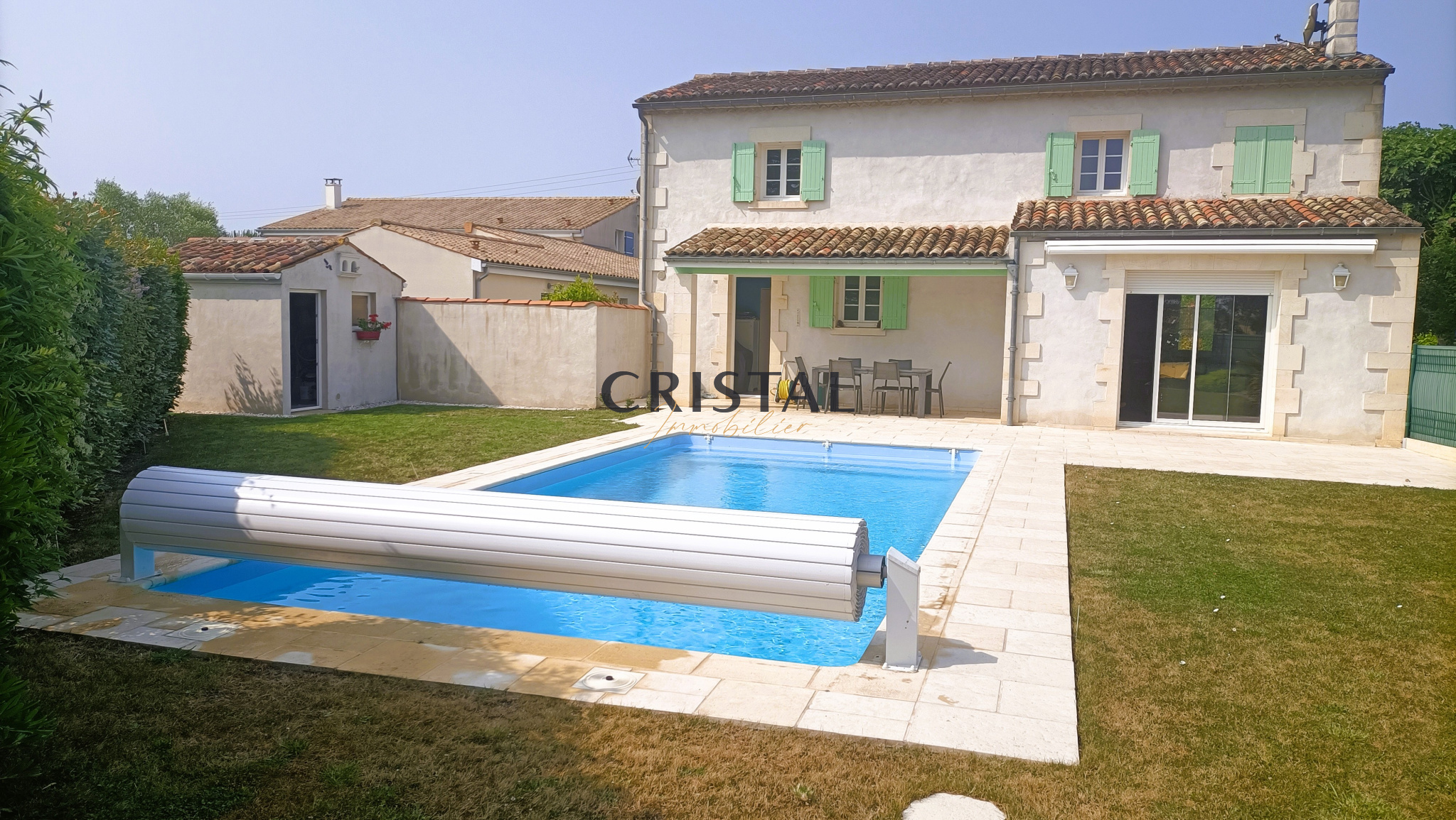 En toute transparence, CRISTAL IMMOBILIER vous présente une maison de type charentaise d'une surface de 114 m2, située à environ 3 kms des commerces et de la plage. Elle comprend une entrée avec un bel escalier menant à l'étage, une cuisine séparée aménagée et équipée avec cellier attenant, un vaste séjour avec cheminée et poutres apparentes donnant sur jardin et terrasse prolongée par une piscine, une salle d'eau et WC. A l'étage, le palier dessert 3 belles chambres, une salle d'eau et WC.