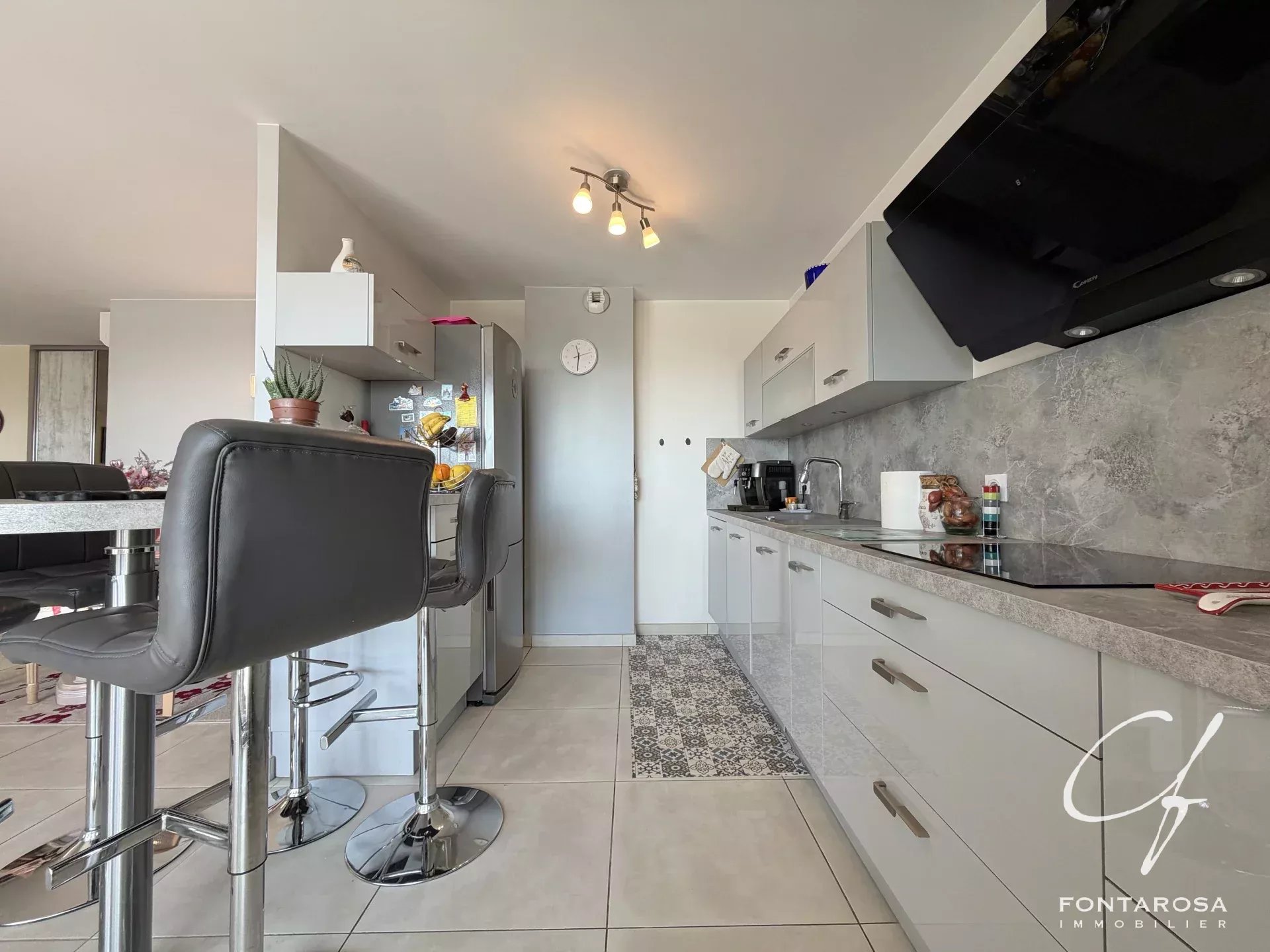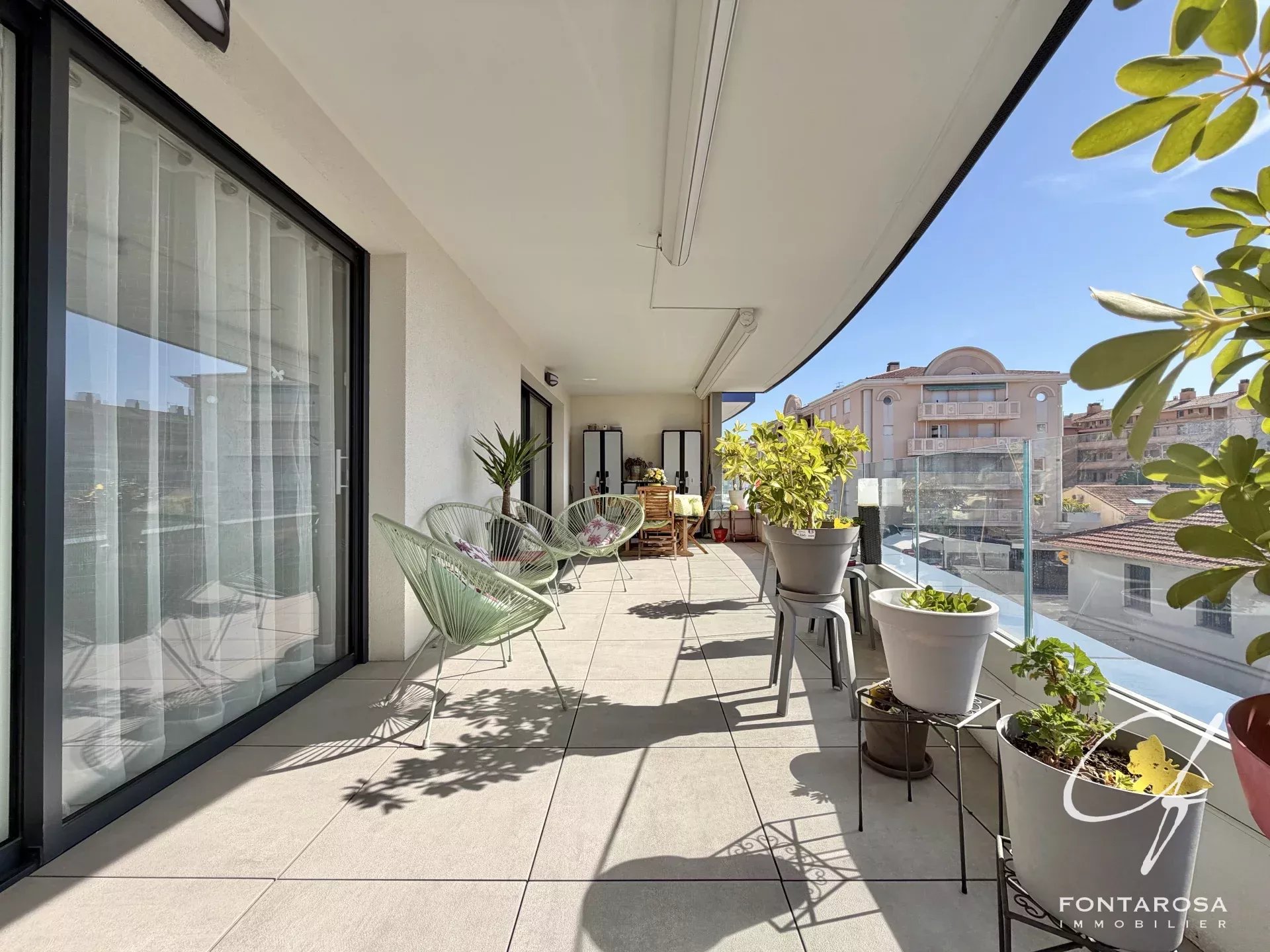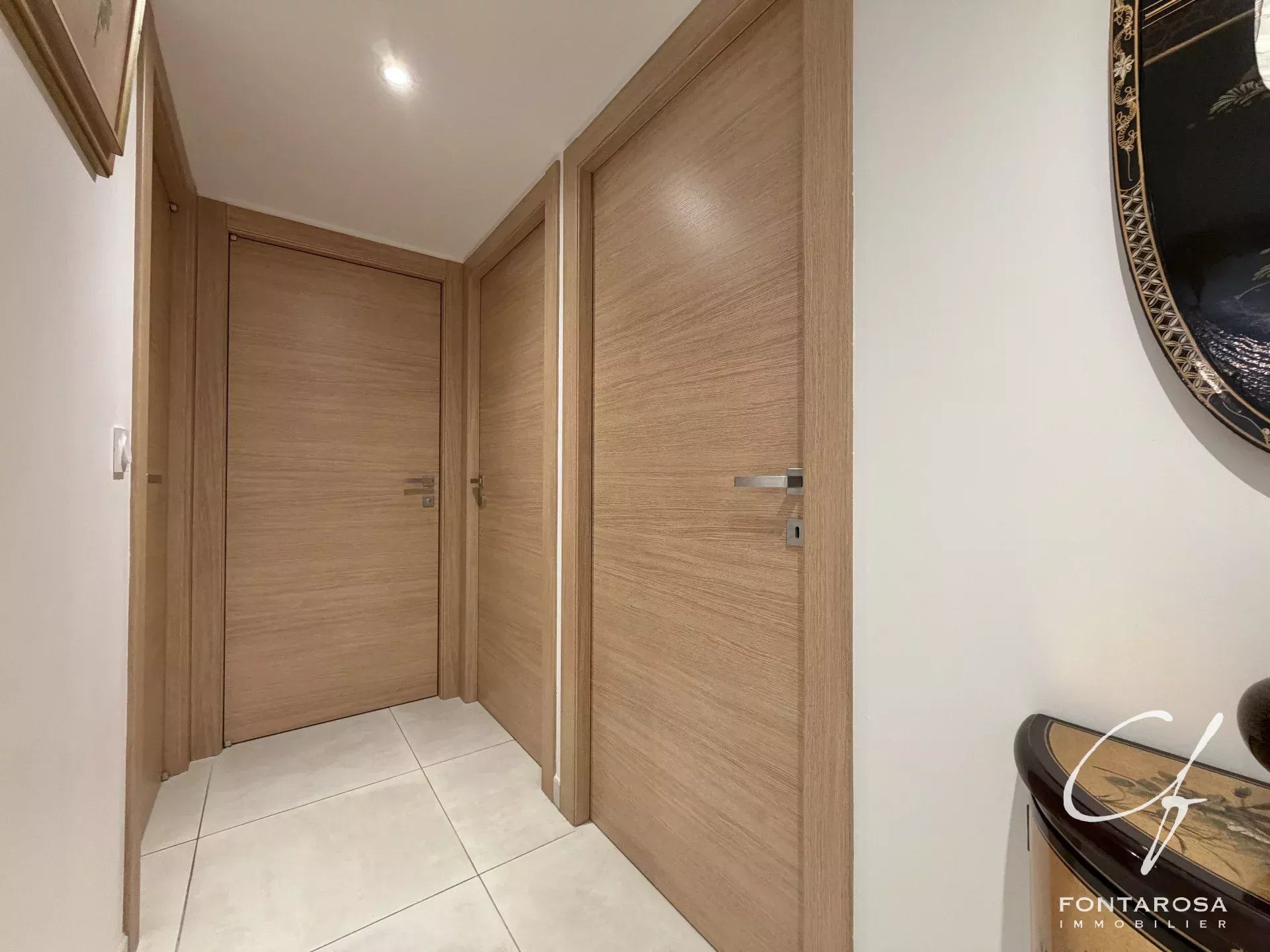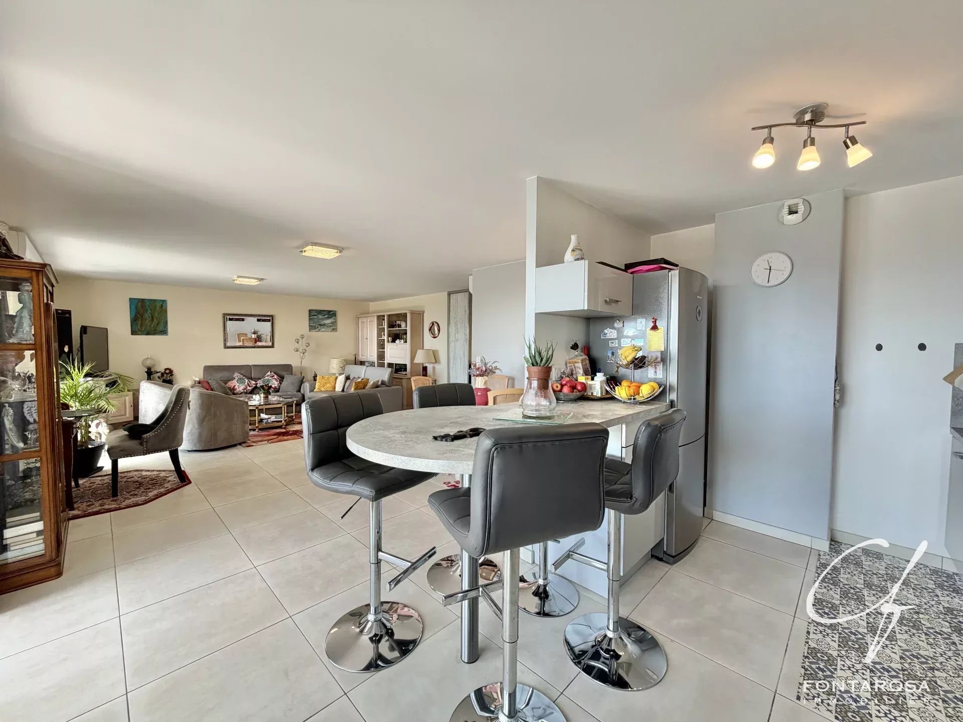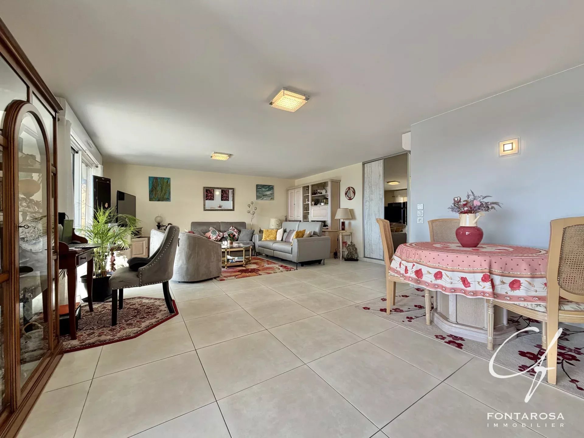 L'appartamento presenta un magnifico soggiorno di 50 m² con volumi generosi, che comprende una cucina aperta sul soggiorno. Questa zona di accoglienza si apre su una spaziosa terrazza di 27 m² esposta a sud, ideale per godere appieno della vista e del clima mediterraneo.