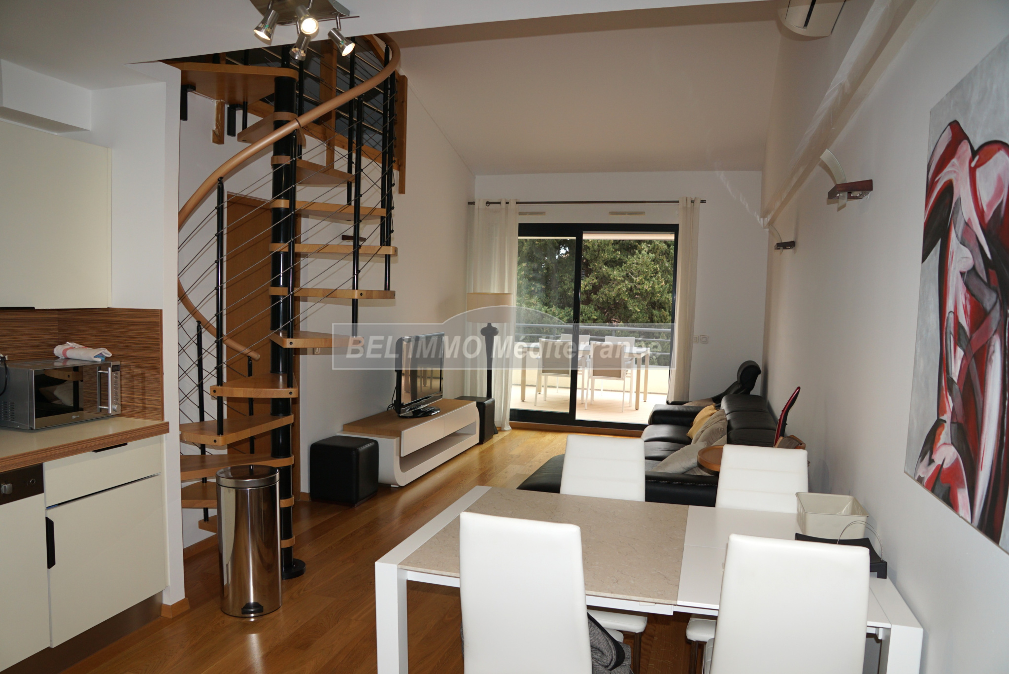 Bel appartement F3 traversant de 58 m2 + mezzanine comprenant entrée, séjour avec cuisine ouverte équipée (lave-vaisselle), 2 chambres (lit largeur 160 cm + 2 lits largeur 90 cm), salle d'eau meublée (lave-linge), WC séparés.
