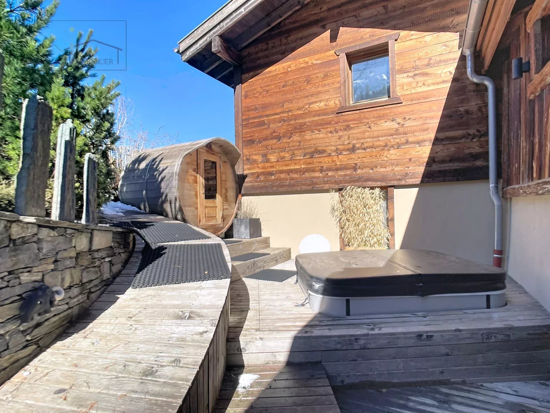 Découvrez ce magnifique chalet situé à Les Houches, offrant un cadre exceptionnel et calme. Composé de 4 chambres + 1 chambre en mezzanine, 2 salles de bain, dont une suite parentale douche à l'italienne, baignoire dans la 2éme. un beau salon avec Cheminée traversante entre le salon et la cuisine, apportant une belle convivialité aux espaces de vie En annexe: un sauna tonneau et un jacuzzi extérieur viennent compléter ce bien. Deux places de parking privatifs exterieurs. avec borne electrique Disponible a partir du 10/04/2027
