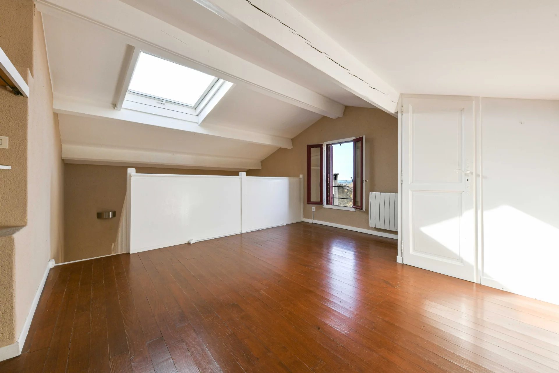Terrasse avec vue dégagée (12,3 m²), triple exposition Séjour avec cheminée, belle cuisine équipée, climatisation Chambre en mezzanine, salle de bains, WC, buanderie Idéal pied à terre ou rendement locatif