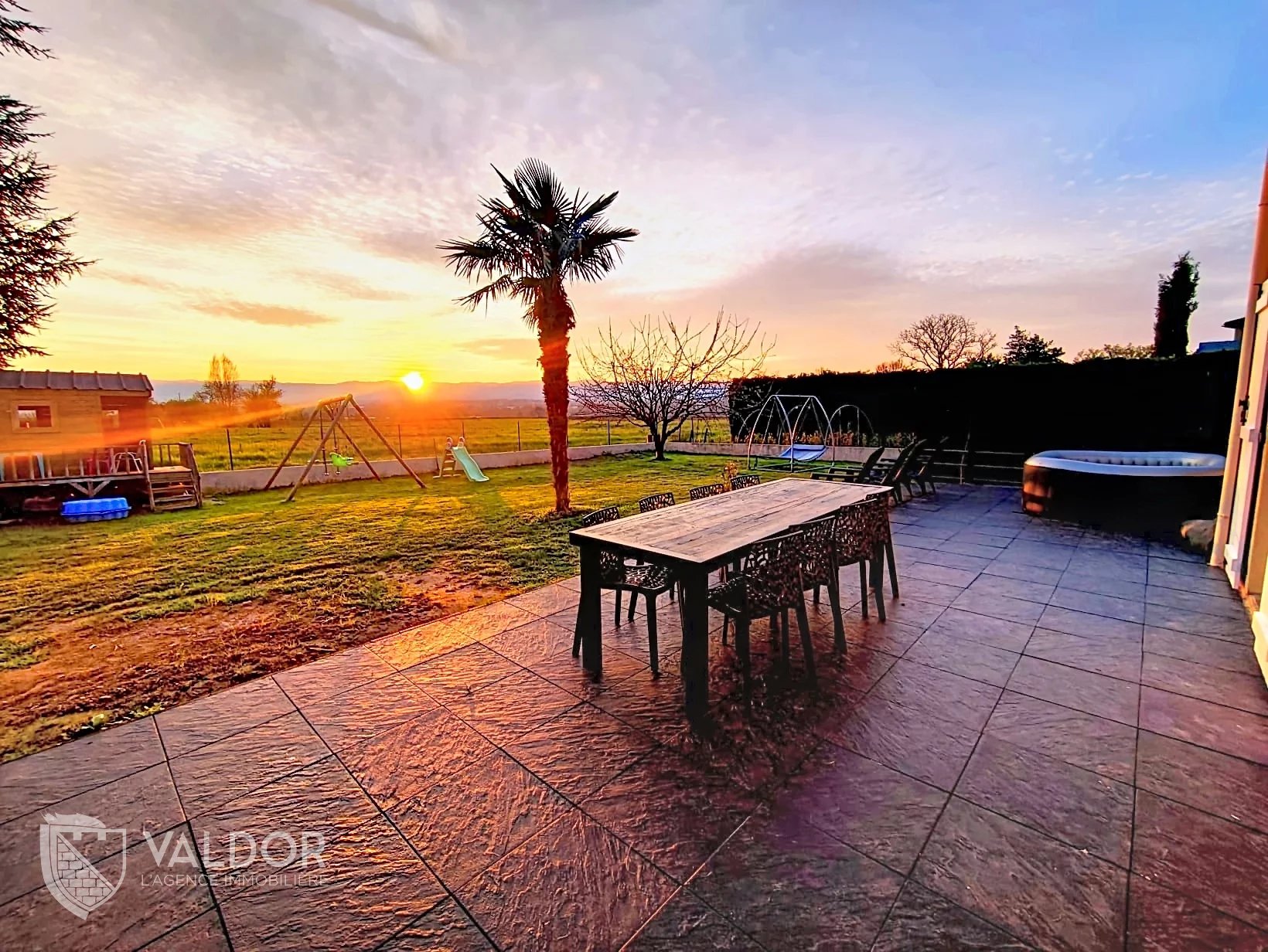 - LURCY (01090) - Exclusivité VALDOR - Ghislain VERMARE Découvrez cette maison avec superbe vue sur le Beaujolais construite en 2012. De plain-pied, vous profiterez d’une entrée desservant la pièce de vie avec sa cuisine ouverte avec accès direct à la terrasse et au jardin. Vous profiterez également d’un toilette séparé ainsi que d’une chambre parentale avec douche italienne et baignoire. À l’étage, le dégagement vous mènera vers trois chambres ainsi qu’une salle de bain avec des toilettes. Un garage isolé et une buanderie complète ce bien. Le tout est édifié sur une parcelle de 730 m² de terrain entièrement clos, aménagé et avec une belle vue dégagée sur le beaujolais. En complément, vous profiterez du confort de la climatisation l'été et d'un poêle à granulé l'hiver. Vous cherchez une maison confortable et moderne ? Ce bien est fait pour vous ! Pour tout renseignement complémentaire, contactez Ghislain VERMARE au 07.87.63.82.96, agent commercial immatriculé au RSAC de Bourg-en-Bresse sous le numéro 800386120 EI VALDOR l'Agence Immobilière Jassans-Riottier Les informations sur les risques auxquelles ce bien est exposé sont disponibles sur le site Géorisques: www.georisque.gouv.fr.