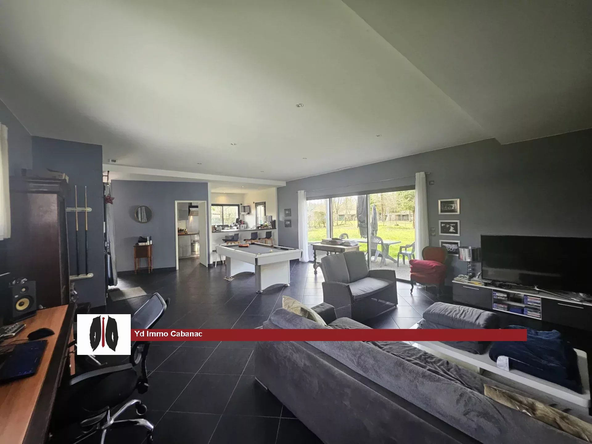 Située dans un environnement calme et verdoyant, à proximité d’Illats et de Landiras, cette belle propriété contemporaine vous séduira par ses volumes, son originalité et son cadre de vie privilégié. Implantée sur un terrain de plus de 2 000 m², la propriété développe environ 245 m² habitables, dont environ 70 m² dédiés à une magnifique piscine intérieure, permettant de profiter de moments de détente toute l’année. La maison se compose de deux habitations reliées par un sas, offrant de nombreuses possibilités : grande maison familiale, accueil de proches ou projet de location. La première partie comprend : Une grande pièce de vie lumineuse Un salon convivial Une cuisine ouverte Un accès direct à l’espace piscine intérieure couverte, idéal pour se relaxer en toute saison Deux chambres , dont une suite parentale avec dressing et salle de bain. La deuxième partie comprend : Une pièce de vie avec salon et cuisine ouverte cellier Une grande suite parentale avec dressing et salle d'eau Entrée indépendante également. À l’extérieur, vous profiterez d’une grande terrasse parfaite pour les repas et moments de convivialité aux beaux jours, ainsi que d’un grand jardin arboré offrant calme et intimité. Les atouts : Propriété contemporaine Terrain de plus de 2000 m² Piscine intérieure de 70 m² Deux espaces de vie reliés Environnement paisible à la campagne Belle terrasse extérieure Une propriété rare dans le secteur, idéale pour les amoureux d’espace et de tranquillité. Contactez vite votre agence locale YDIMMO CABANAC