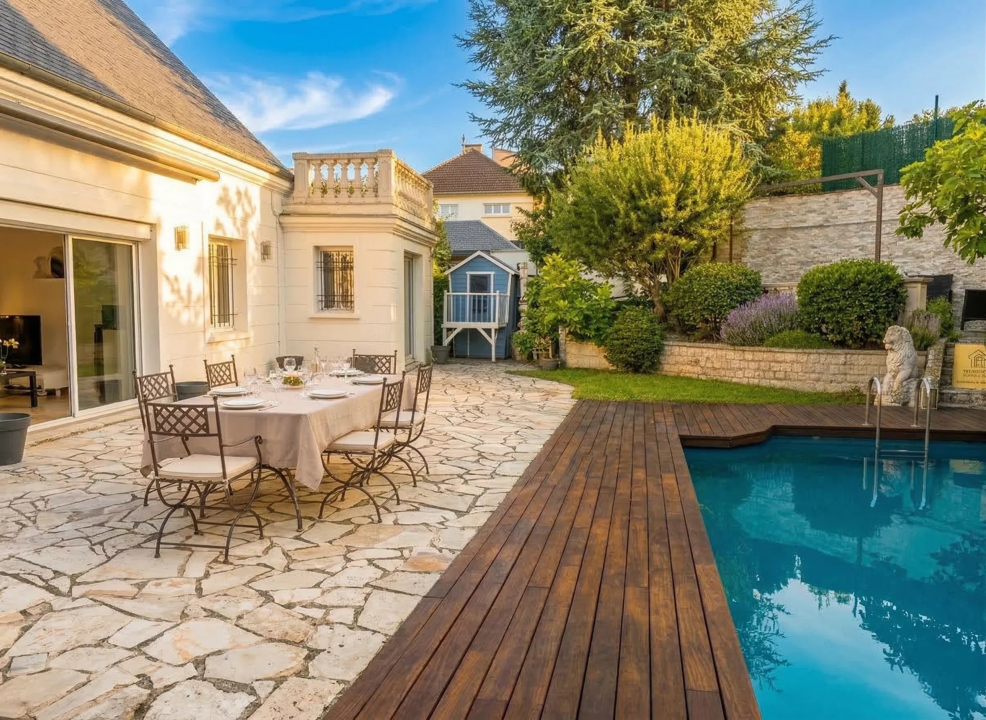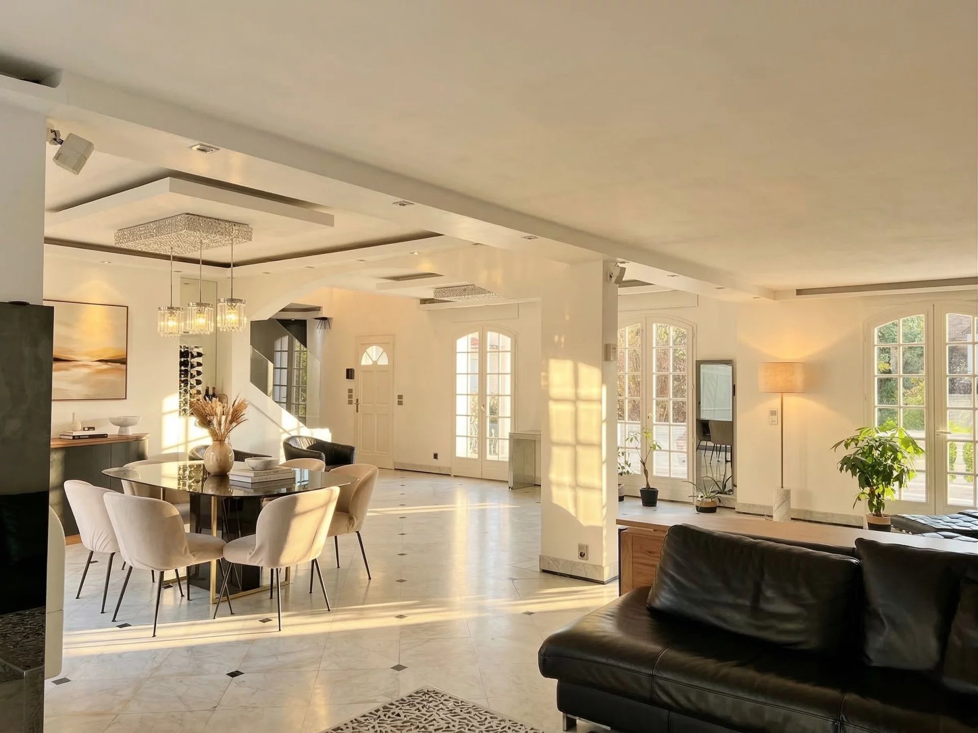 À la lisière de La Varenne, cette élégante maison contemporaine offre des volumes rares et une luminosité remarquable. Dès l’entrée cathédrale, les espaces se dévoilent avec harmonie pour laisser place à une superbe pièce de réception d’environ 80 m², largement ouverte sur le jardin paysager et la piscine. La cuisine dinatoire, moderne et parfaitement équipée, s’organise autour d’un îlot central convivial. La maison propose cinq chambres, dont deux de plain-pied, ainsi qu’un bureau au rez-de-chaussée avec accès direct à la terrasse. Deux salles d’eau et une salle de bains complètent l’ensemble. Le sous-sol total accueille une salle de jeux, une buanderie et un garage, offrant de nombreux espaces de rangement et de loisirs. Climatisation réversible, DPE D. À seulement 500 mètres du centre de La Varenne et de ses commerces, cette propriété conjugue confort, élégance et qualité de vie. Une adresse rare à découvrir.