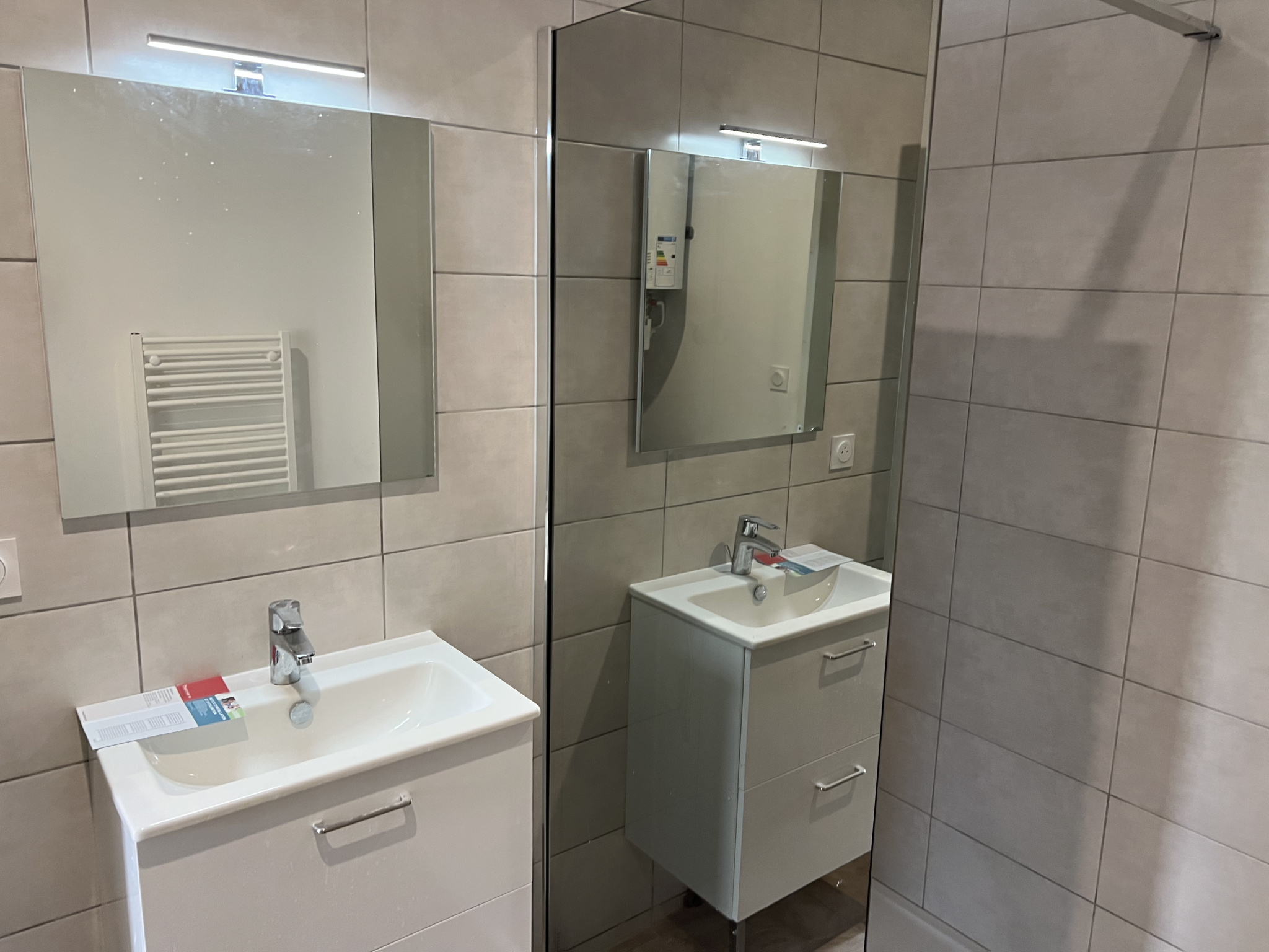 Ce studio se compose d'une salle de douches et d'une pièce de vie comprenant une entrée, une cuisine et une chambre.