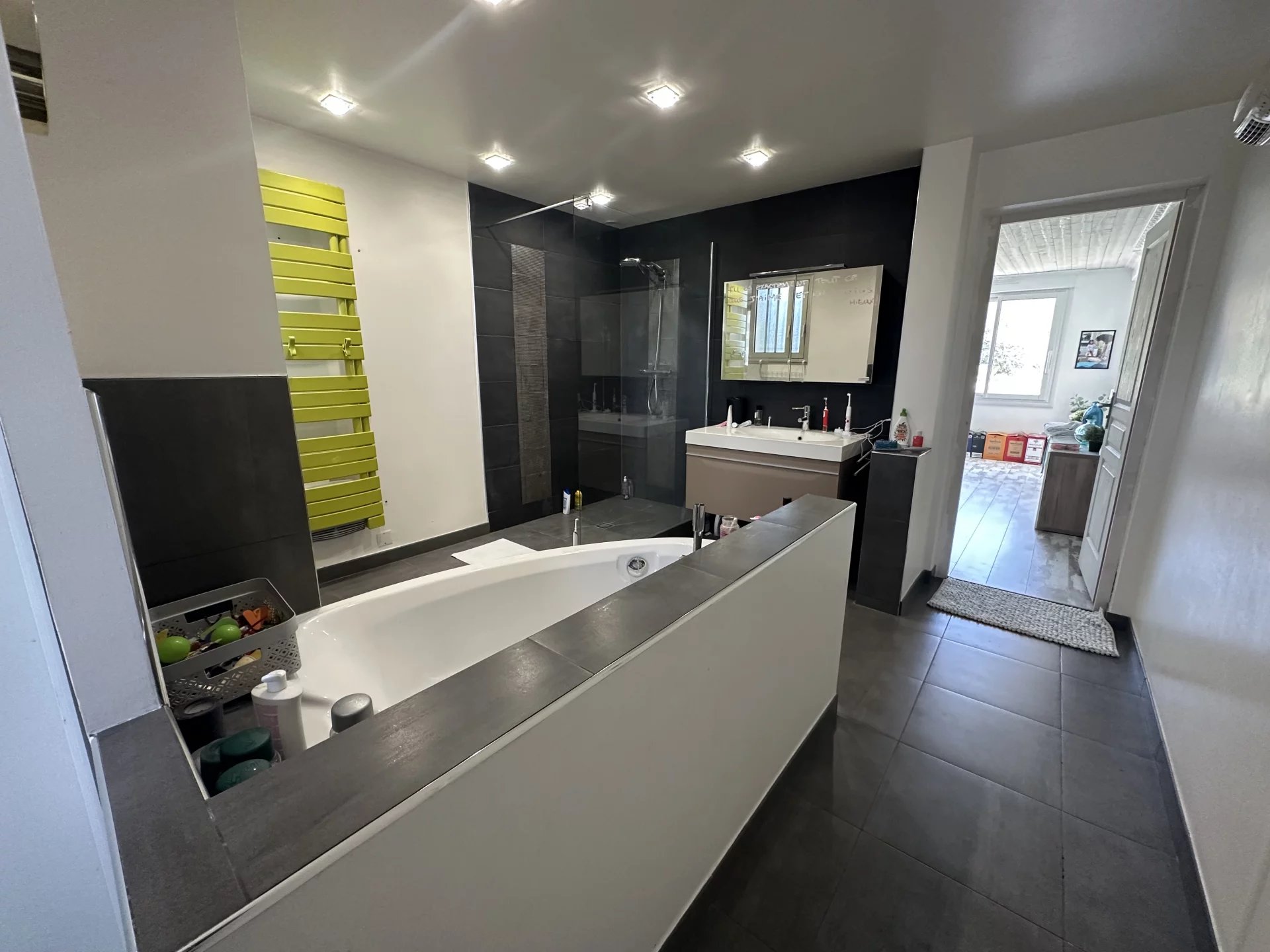 Vous trouverez également à ce niveau un WC indépendant ainsi qu’une suite parentale avec salle de bain, permettant une vie de plain-pied.