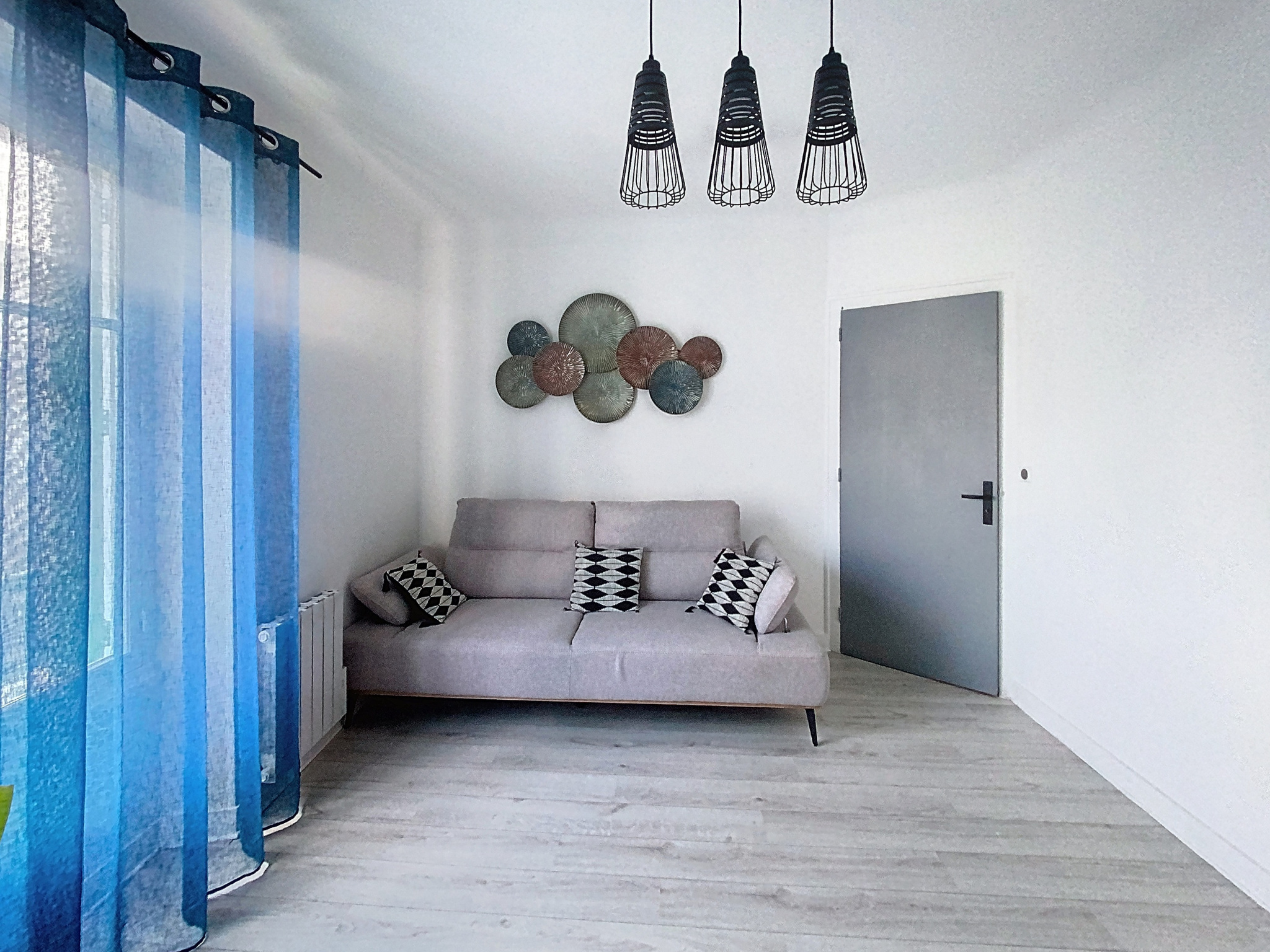 Dès l'entrée, on découvre un séjour lumineux, véritable coeur de l'appartement, un espace ouvert et convivial où la lumière accompagne chaque moment de la journée. La cuisine aménagée et équipée s'intègre harmonieusement à cet espace de vie, pensé pour le partage et la simplicité.
