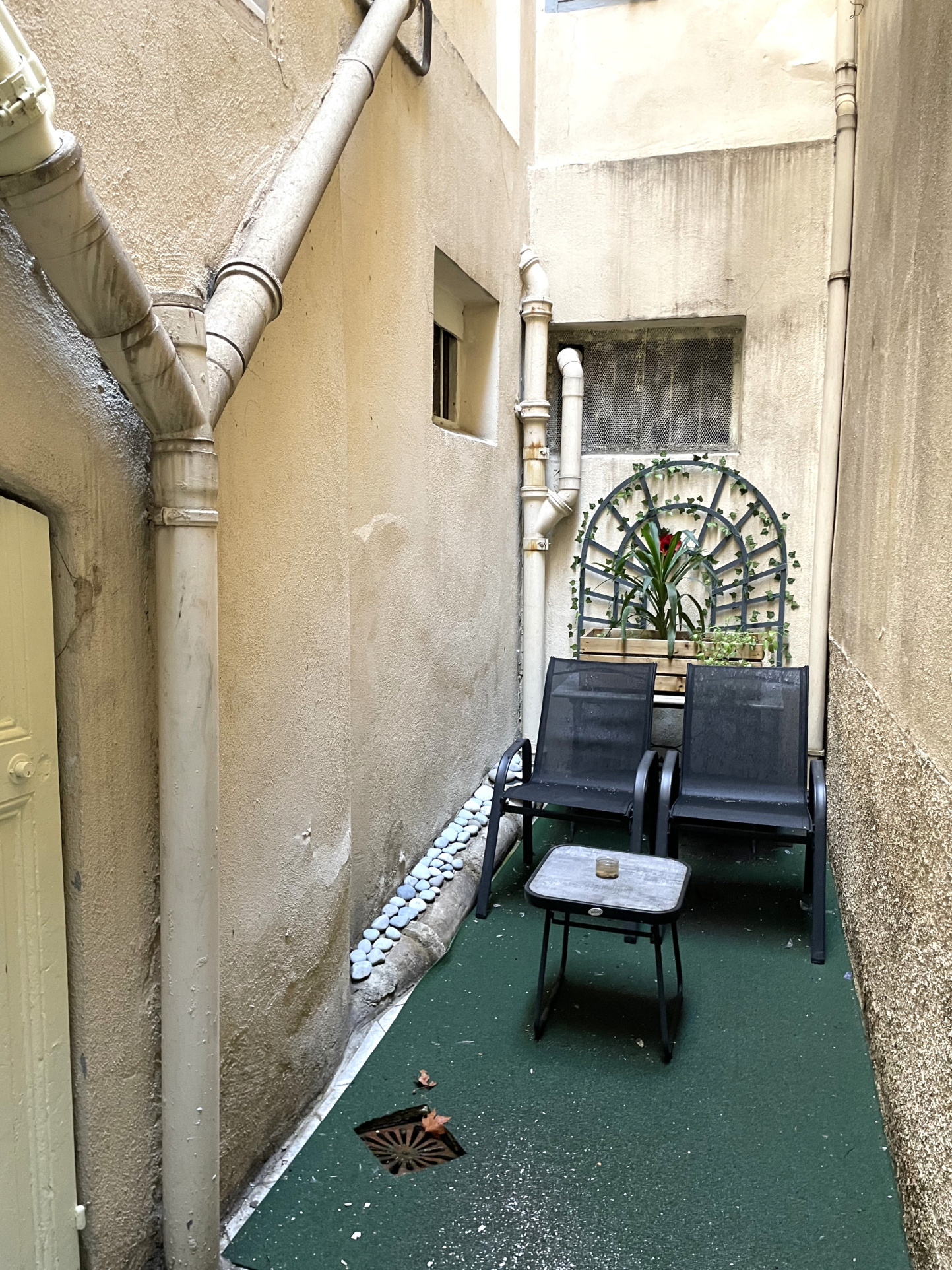 Proche Jean Medecin, au calme dans la cour intérieure d'un jolie immeuble bourgeois, studette de 7.22m2 en bon état, située en rez de chaussée. Elle se compose d'une pièce avec lit escamotable, d'une kitchenette équipée et d'une salle d'eau avec WC. Jouissance d'une cour anglaise dont une partie est fermée en loggia. Climatision reversible. Double vitrage. Faibles charges. Chauffage et eau chaude individuels. Vendu meublé.