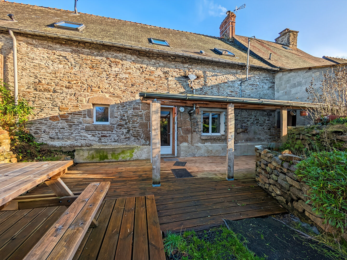 Réf: MD-16707, 244950 euros FAI. PLEINE-FOUGERES MAISON ENSEMBLE DE 2 MAISONS PLEINE FOUGERES EN EXCLUSIVITE AU CABINET CHATEAUBRIAND IMMOBILIER Ensemble de 2 maisons dont une rénovée et la seconde à rénover, fort potentiel ? Proche de Pleine-Fougères Située dans un hameau paisible à proximité de Pleine-Fougères, cette maison ancienne rénovée offre un cadre de vie agréable au coeur d'un terrain de 4 272 m², avec un fort potentiel de part une maison à rénover, et la praticité de dépendances et un puits. La maison principale développe 130 m² habitables. Elle se compose au rez-de-chaussée d'une agréable pièce de vie de 33 m², chaleureuse grâce à sa cheminée ancienne avec insert et le confort de son poêle à bois. Vous y trouverez également une cuisine aménagée et équipée avec îlot central et une salle d'eau. La pièce de vie s'ouvre sur une terrasse couverte exposée ouest, idéale pour profiter des soirées en extérieur, avec une belle vue sur le jardin. A l'étage, l'espace nuit propose une grande mezzanine lumineuse desservant deux chambres, dont une avec salle d'eau privative, ainsi qu'un dressing. Un garage attenant de 25m² comprenant une cave/arrière-cuisine, avec grenier au-dessus, complète l'ensemble. A l'extérieur, vous pourrez profiter des avantages d'un puits et vous bénéficierez également d'un garage de 29m², un hangar de 60m² et un second de 14.8m², parfaits pour du stockage et atelier. Enfin, un beau potentiel supplémentaire s'offre à vous grâce à une maison accolée à rénover, d'environ 83 m² habitables sur deux niveaux, comprenant 2 chambres et un bureau à l'étage. Idéale pour un projet d'agrandissement, de gîte, de location ou d'espace indépendant. S'ajoutent 84m² de surfaces annexes, à savoir celliers, atelier. Un bien offrant de nombreuses possibilités de projets dans un environnement calme. CLASSE ENERGIE : C (179Kwh/m²/an) CLASSE CLIMAT: A (5 kg CO²/m²/an) - Montant moyen estimé des dépenses annuelles d'énergie pour un usage standard, établi à partir des prix de l'énergie des années 2021/2022 et 2023 : entre 1690 euros et 2360 euros. Les informations sur les risques auxquels ce bien est exposé sont disponibles sur le site Géorisques : www.georisques.fr Toutes nos annonces sur www.cabinetchateaubriand.com (*Prix Honoraires Agence Inclus dont 6.5% à la charge de l'acquéreur) (6.50 % honoraires TTC à la charge de l'acquéreur.)