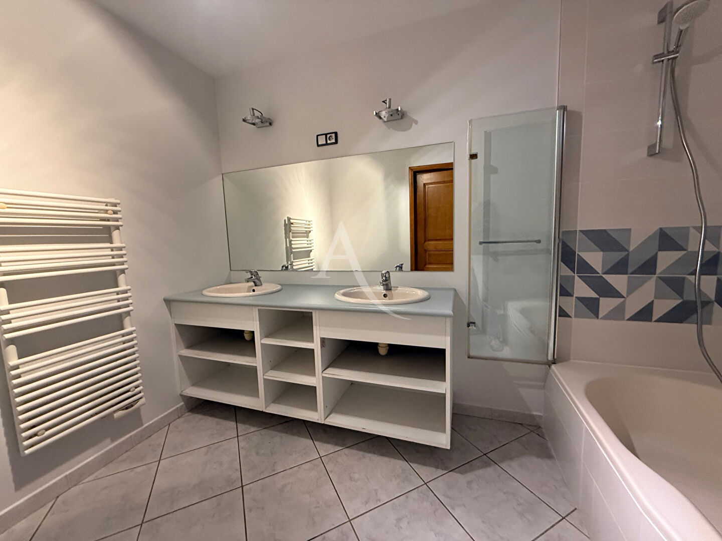 A louer Viriat, rare à la location, vaste maison sur sous-sol semi-enterrée de 178 m² comprenant de belles prestations et située à 7 minutes du centre de Bourg dans un écrin de verdure clos avec vue sur plan d'eau. Elle comprend: une cuisine incorporée, un vaste séjour de 47 m², 3 chambres de plain pied toutes avec chacune une salle d'eau privative, grande mezzanine, dressing, buanderie, placards, 3 WC, grand grenier, sous-sol avec triple garage et cave. Chauffage gaz de ville, alarme, portails automatisés....etc. Loyer : 1480 euros par mois charges comprises dont 150 euros de provisions de charge - Dépôt de garantie : 1330 euros - Honoraires charge locataire : 1140 euros TTC dont 250 euros TTC pour état des lieux d'entrée.