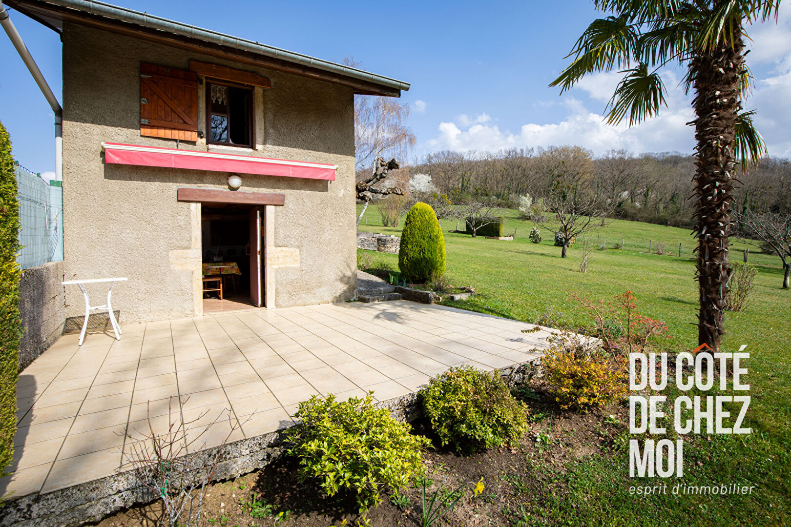 En position dominante avec vue, sur les hauteurs d'Ambérieu-en-Bugey, au calme absolu et en pleine nature, magnifique grangeon bugiste typique sur un terrain de 2 656 m2 arboré et paysager. Charme authentique, intimité et âme préservée pour ce grangeon situé dans un endroit unique offrant au rez-de-chaussée, une pièce principale ouverte sur une terrasse avec store-banne, à l'étage une seconde pièce. Une pièce en annexe à usage de rangement/atelier. Pierres et poutres apparentes. Terrain aménagé avec espaces terrasses. Récupération d'eau de pluie. Habitat de type secondaire. Aucun assainissement, ni d'alimentation en eau courante. Production d'électricité par groupe électrogène. Zone N du PLU (aucune extension possible). Toutes commodités à proximité immédiate. Les honoraires sont à la charge du vendeur.