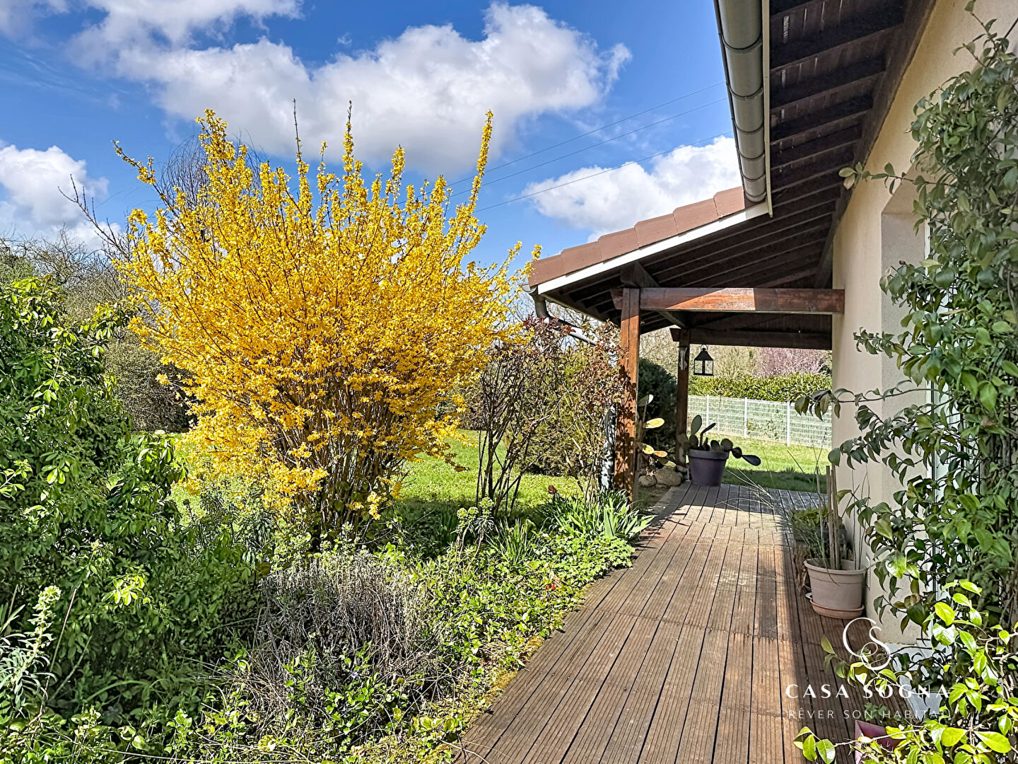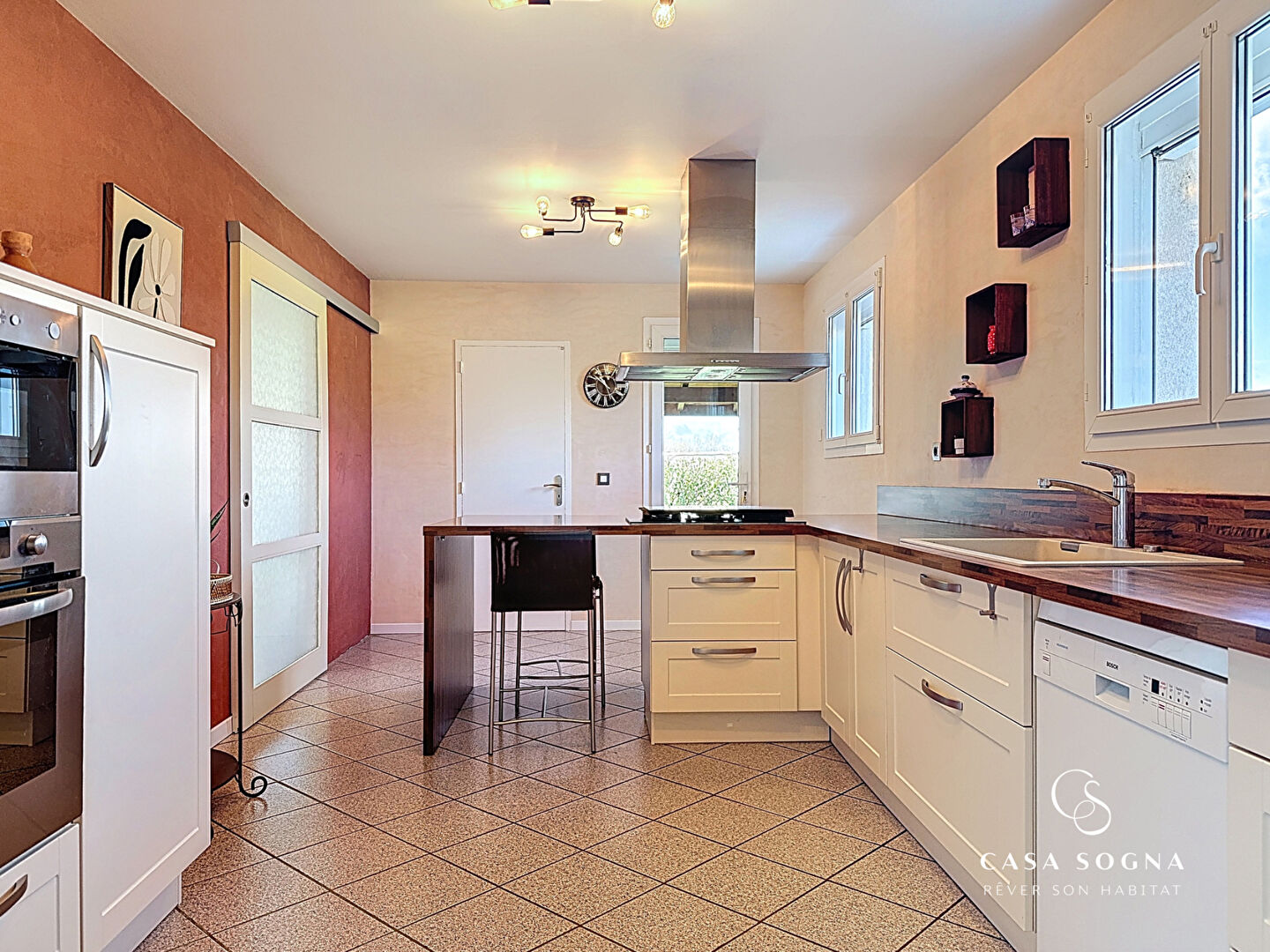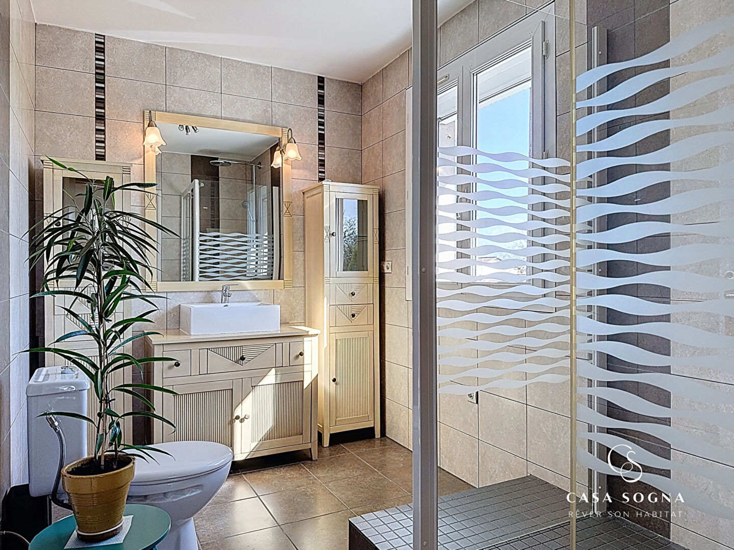 Casa Sogna vous présente en exclusivité, à Château Gaillard, à 5 minutes d'Ambérieu-en-Bugey avec accès rapide à la gare (5 minutes) et à l'entrée d'autoroute (2 minutes), cette superbe maison de presque 186 m² implantée sur un magnifique terrain arboré, entièrement clos et sans vis-à-vis de 1514 m². La propriété offre également plusieurs places de stationnement à l'intérieur de la cour ainsi qu'un terrain parcellable, laissant entrevoir de belles perspectives d'aménagement ou de valorisation. Dès l'entrée, vous découvrez un hall accueillant et des WC indépendants, ouvrant sur une impressionnante pièce de vie aux volumes généreux avec une belle cheminée. Son plafond cathédrale et sa luminosité grâce à l'exposition Sud/Est créent une atmosphère chaleureuse et conviviale. Le salon et la salle à manger se prolongent vers une cuisine semi-ouverte exposée Sud/Ouest, accompagnée de son cellier, avec accès direct à une agréable terrasse couverte, idéale pour profiter des beaux jours. Le coin nuit du rez-de-chaussée, accessible par un dégagement avec placards, comprend trois belles chambres avec rangements, dont une disposant d'un double linéaire de placards, ainsi qu'une spacieuse salle d'eau avec une douche à l'italienne. A l'étage, une vaste mezzanine ouverte sur la pièce de vie accueille aisément un bureau, un coin lecture ou un espace détente et donne accès à un balcon également accessible depuis la chambre avec dressing. La configuration permet par ailleurs d'y créer une cinquième chambre. La chambre bénéficie ainsi d'un agréable point de vue sur le jardin. Une salle d'eau avec WC complète ce niveau. La maison dispose en complément d'un sous-sol complet d'environ 115 m², comprenant : un grand garage pouvant accueillir deux véhicules, un atelier, un local technique pouvant accueillir un futur projet de piscine, deux grandes pièces de stockage (pouvant faire le bonheur d'un artisan), une cave, une chaufferie/buanderie et une pièce avec réserve permettant l'installation de WC. Une propriété rare offrant de très beaux volumes, de nombreux espaces de rangement et un potentiel d'évolution intéressant, idéale pour une famille à la recherche d'espace, de tranquillité et de proximité avec les axes de transport et le centre ville d'Ambérieu en Bugey à 5 minutes. Visite virtuelle sur demande ! DPE : D/ GES : B Prix moyens des énergies indexés sur les années 2021, 2022, 2023 (abonnements compris): entre 2410 euros et 3270 euros. Les informations relatives aux risques auxquels ce bien est exposé sont disponibles sur le site www.georisques.gouv.fr. Prix: 579 000 euros Honoraires Agence inclus à la charge du vendeur. Pour toute information complémentaire ou pour organiser une visite, contactez Cynthia Dumont au 06 15 34 73 60 Agent immobilier immatriculé RCS 935 359 489 www.casa-sogna.immo 16 Rue Alexandre Bérard, 01500 Ambérieu-en-Bugey