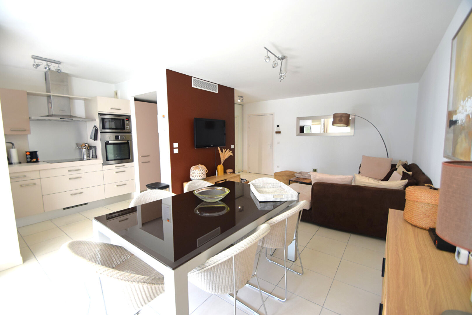 EXCLUSIVITE. Superbe 3 pièces avec grande terrasse plein sud dans résidence de standing avec piscine. Au coeur d'un environnement privilégié, niché dans un magnifique parc paysager au calme absolu, découvrez ce superbe appartement 3 pièces de 72 m², prolongé par une spacieuse terrasse plein sud de 22 m². Situé au sein d'une résidence d'excellent standing avec magnifique piscine, cet appartement en parfait état séduit immédiatement par la qualité de ses prestations, sa luminosité remarquable et son atmosphère paisible. L'agencement est particulièrement agréable : toutes les pièces ouvrent sur la grande terrasse exposée plein sud, offrant une continuité intérieur/extérieur très appréciable et une belle lumière naturelle tout au long de la journée. Vous profiterez d'un environnement exceptionnel, au coeur d'un parc verdoyant, tout en bénéficiant d'une situation idéale : commerces et plages accessibles à pied. Pour compléter ce bien : Garage fermé et Place de parking privative. Un bien rare réunissant standing, confort, luminosité et emplacement privilégié, idéal en résidence principale comme secondaire.
