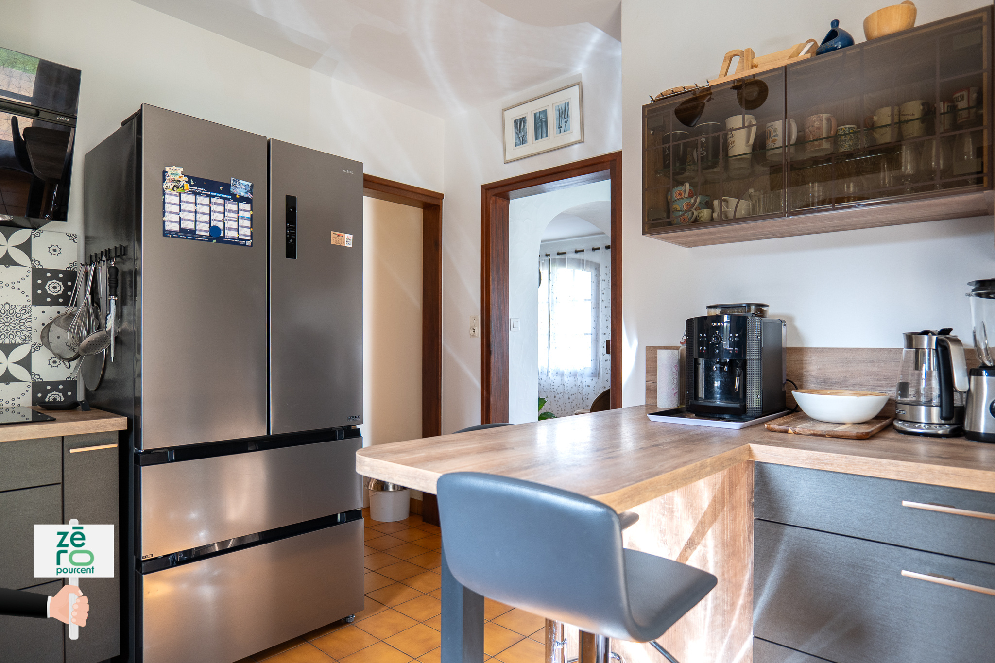 La cuisine aménagée et équipée, moderne et fonctionnelle, permet également un accès direct à la terrasse, parfait pour profiter des repas extérieurs. Une arrière-cuisine aménagée, pratique et bien pensée, complète cet espace.