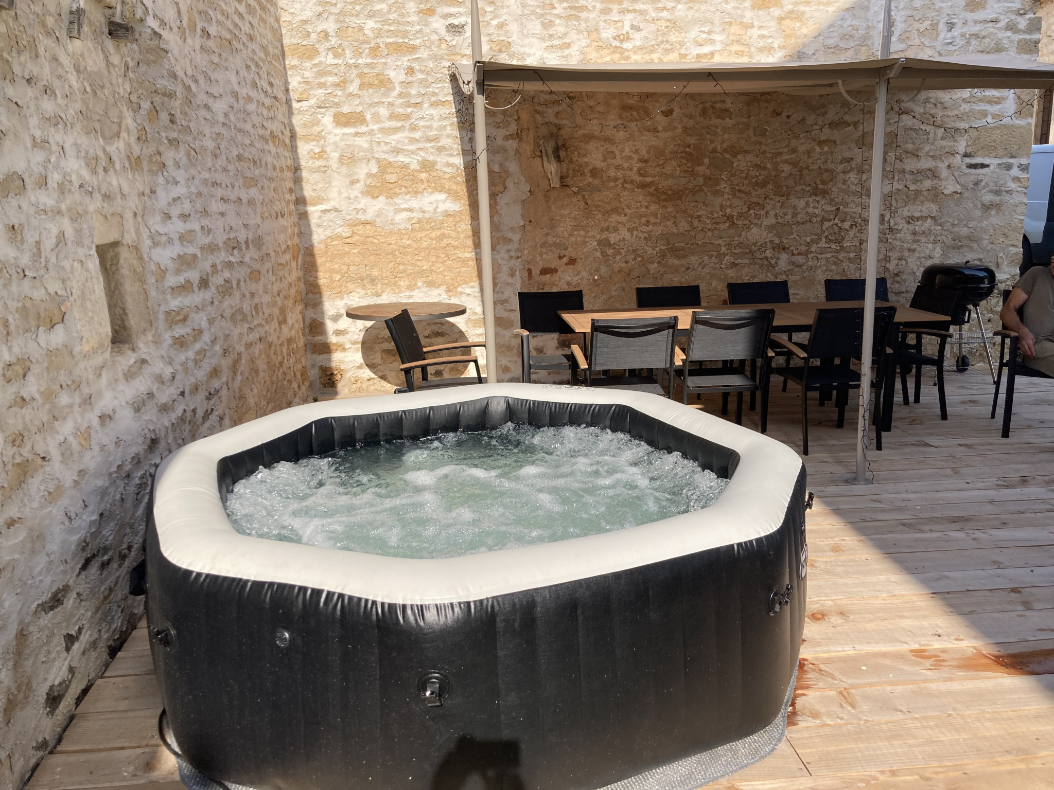 Découvrez cette magnifique demeure de caractère, accessible par une élégante arche en pierre, ouvrant sur une cour intérieure avec stationnement pour plusieurs véhicules.