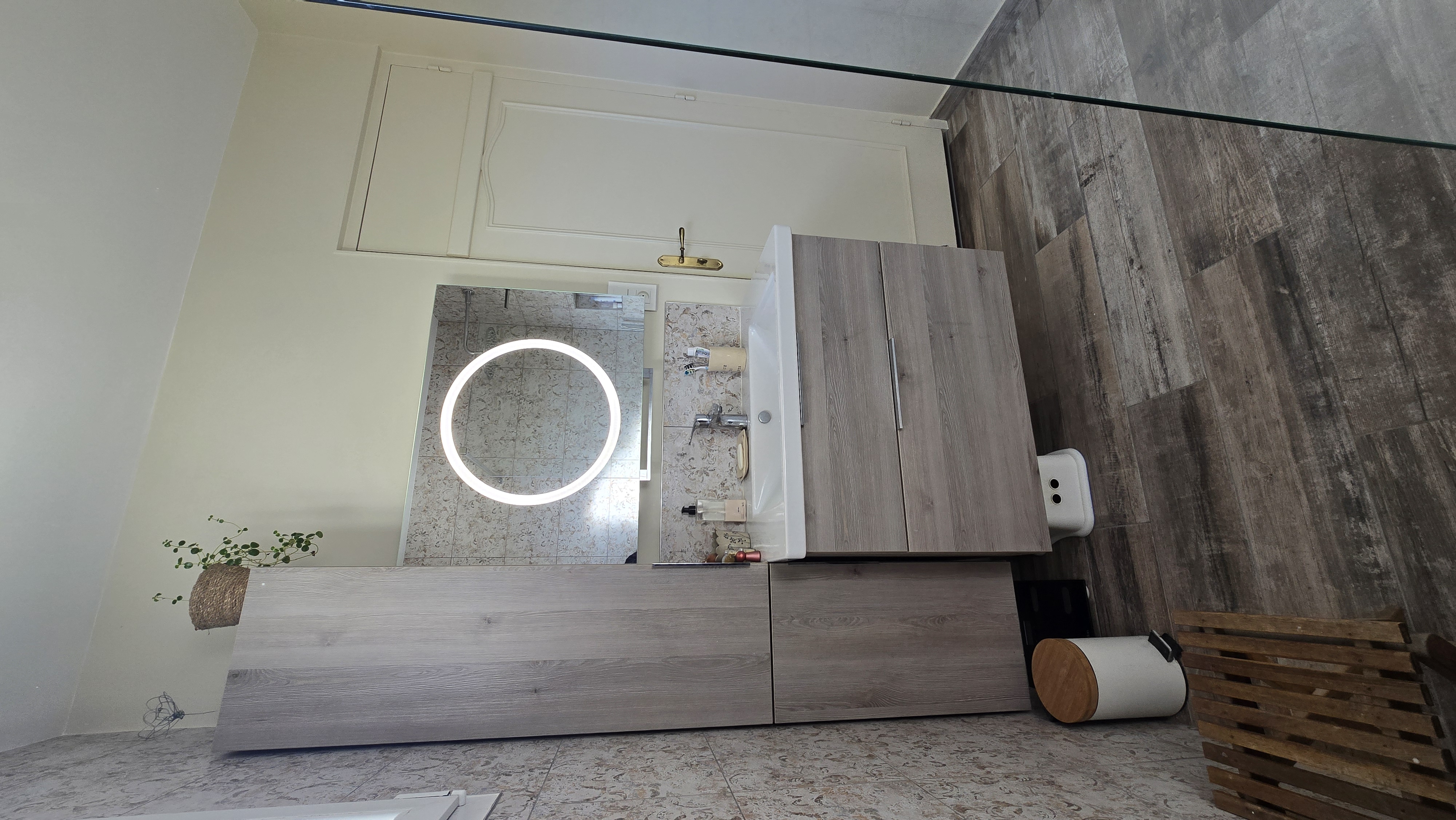 Au rez-de-chaussée, vous trouverez une entrée, une cuisine entièrement équipée de 10 m², un salon-séjour lumineux de 28 m² ouvrant sur une terrasse de 20 m² avec store bane, une salle de bain ainsi qu’un WC indépendant avec lave-mains et radiateur.