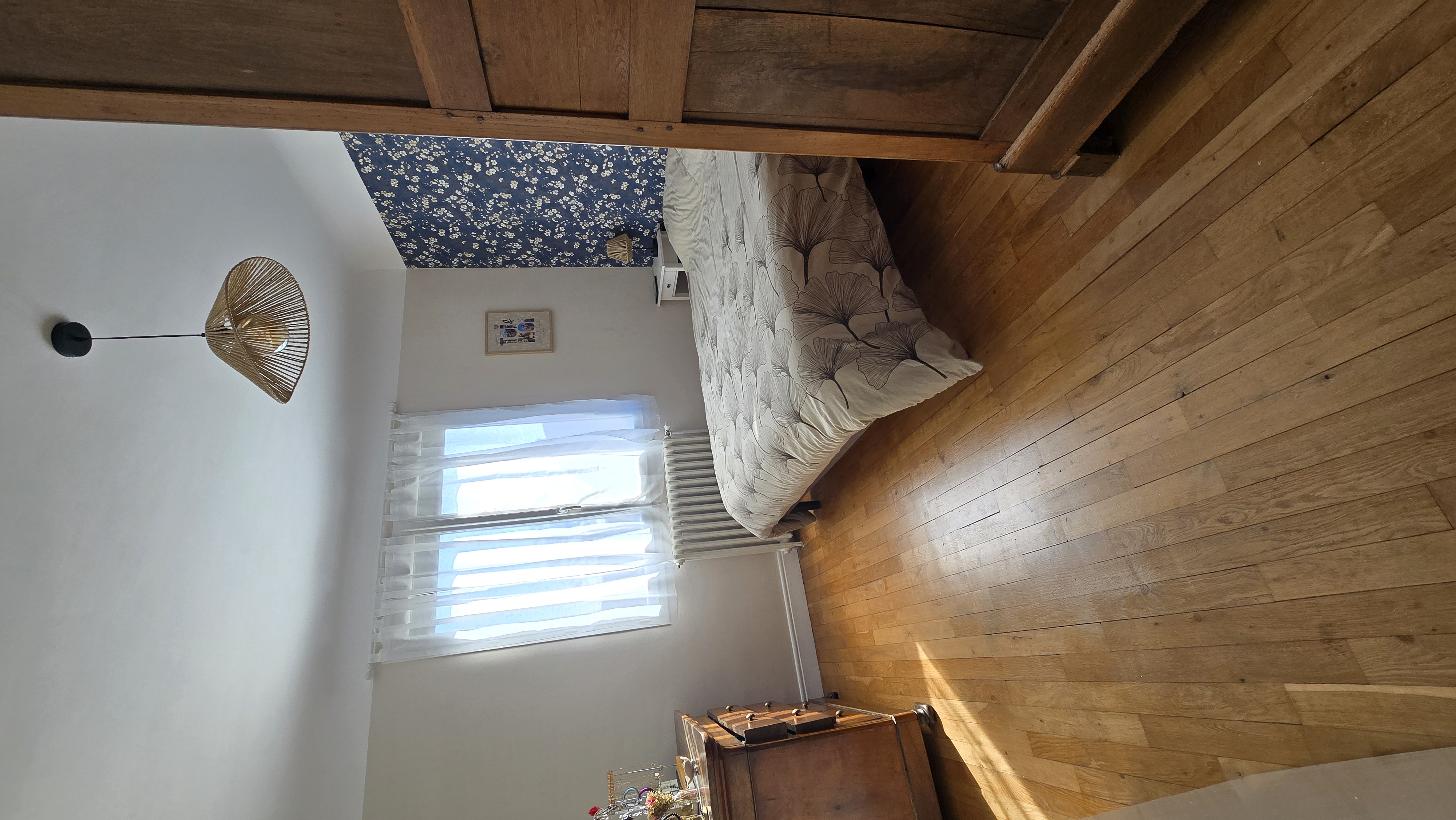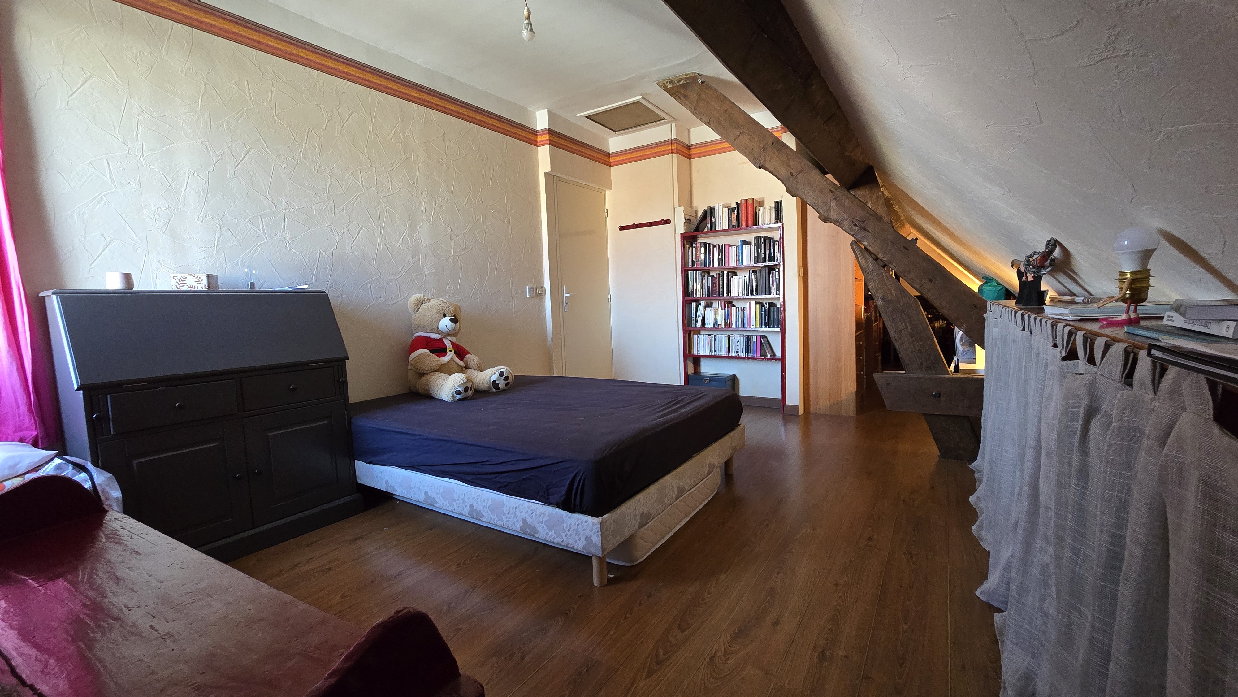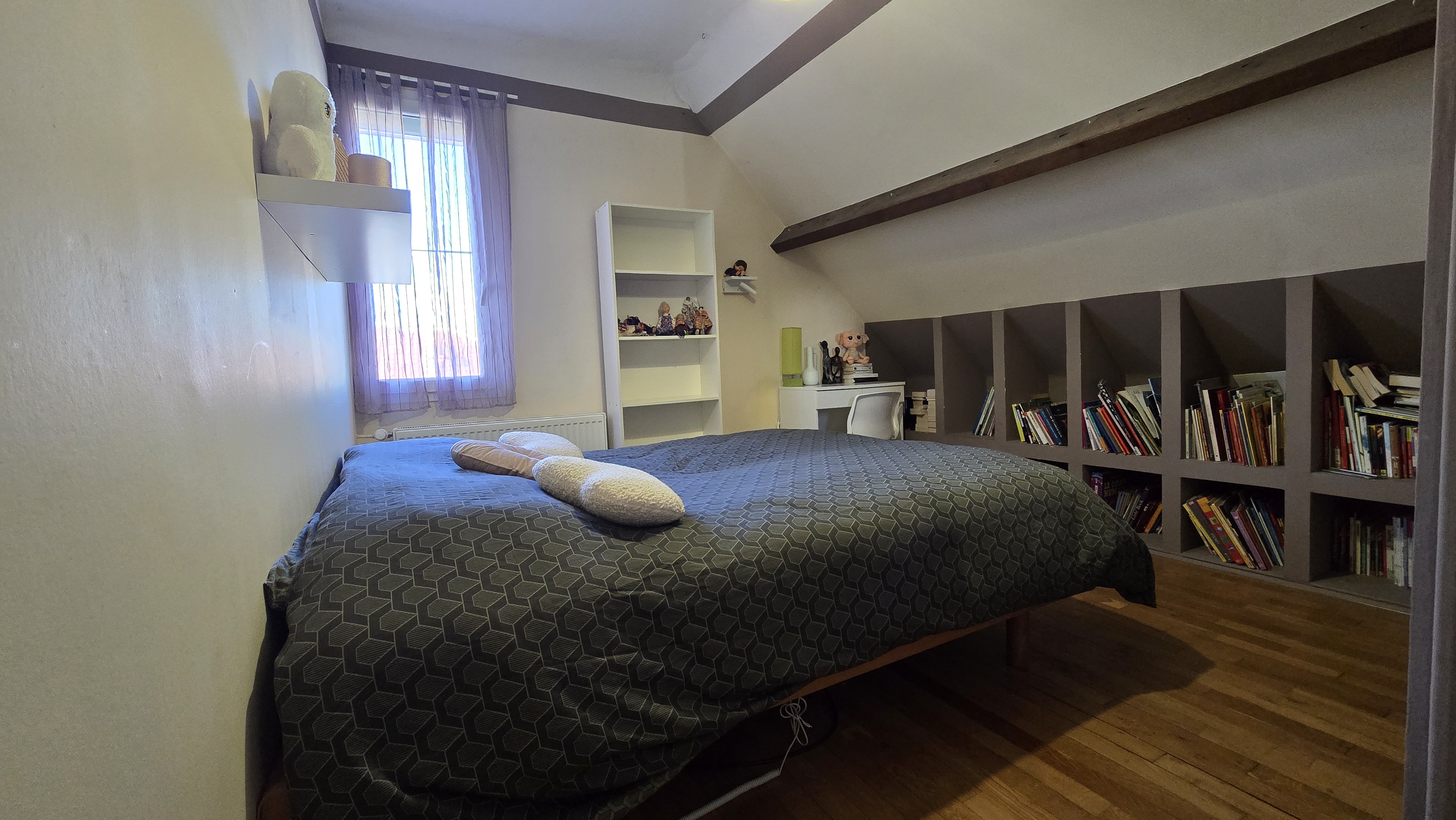 À l’étage, l’espace nuit se compose de trois chambres (11 m², 13 m² et 11 m²) dont deux avec dressing en sous pente (2 m² supplémentaires chacun).