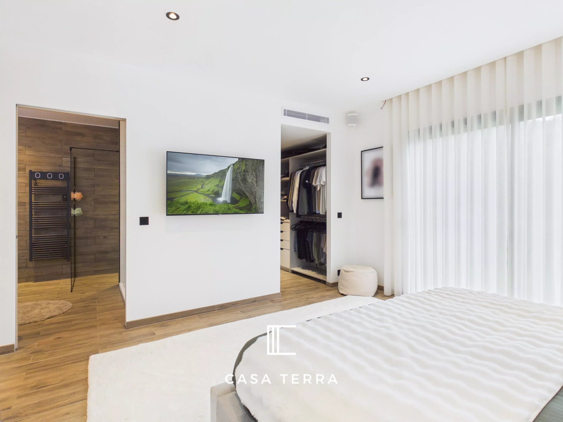 La maison est équipée de climatisations réversibles gainables garantissant un confort optimal toute l'année. La villa 'NOVA' dispose de baies vitrées à galandages dans l'ensemble des pièces permettant de prolonger les espaces intérieurs vers l'extérieur.