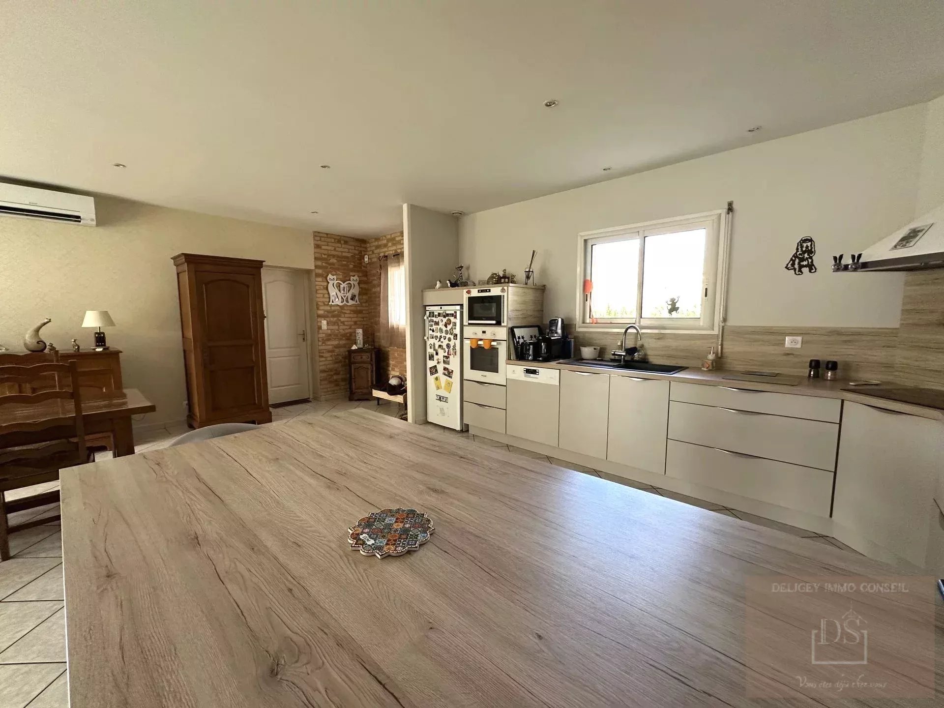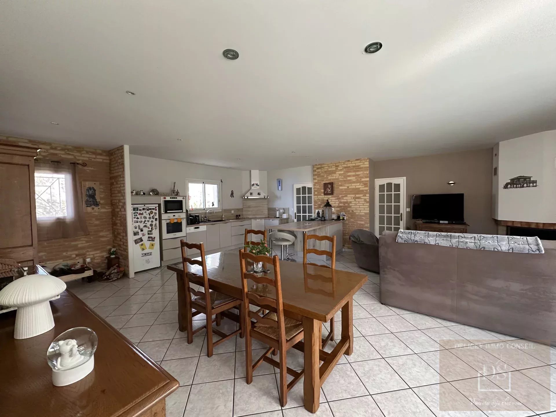 Maison de plain‑pied en parfait état dans une impasse calme sur un beau terrain arboré et piscinable de 900 m². Située dans un environnement agréable et paisible, cette maison parfaitement entretenue offre un cadre de vie idéal, alliant confort, luminosité et beaux volumes. Belle pièce de vie de 55 m² climatisée avec cuisine ouverte et cheminée à insert, offrant un espace chaleureux et convivial. Très grand cellier, idéal pour le rangement et l’organisation du quotidien, 3 chambres spacieuses équipées de placards intégrés, 1 salle d’eau moderne avec double vasques et douche à l’italienne,1 toilette indépendant, une véranda exposée plein sud parfaite pour profiter de la lumière toute l’année, un grand garage attenant. Terrasse avec barbecue, idéale pour les moments en famille ou entre amis, arrosage automatique, puits foré. Cette maison combine calme, confort et prestations de qualité, le tout dans un cadre verdoyant. Il ne vous reste plus qu'à récupérer les clefs...vous êtes déjà chez vous !!! Les informations sur les risques auxquels ce bien est exposé sont disponibles sur le site Géorisques : georisques.gouv.fr