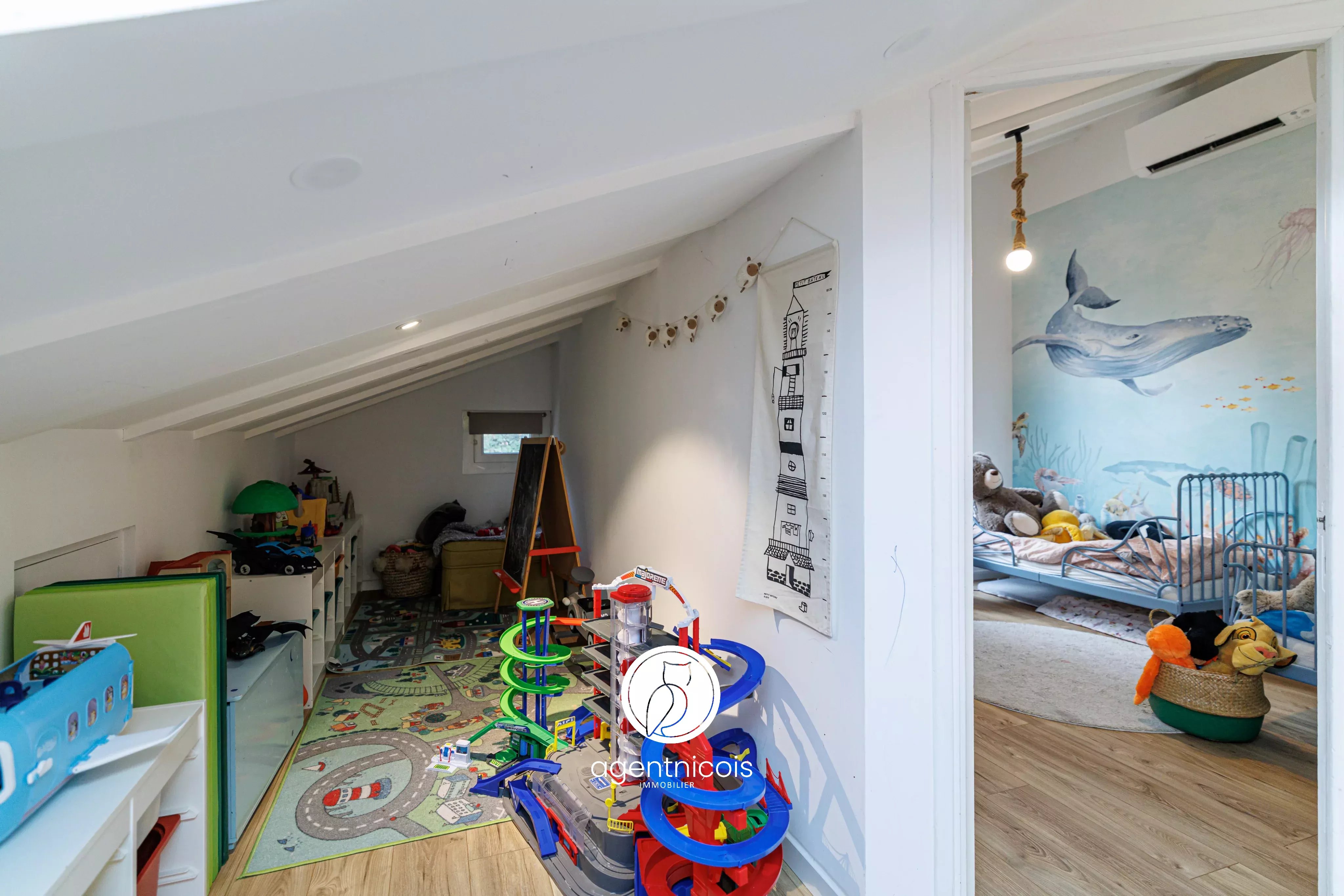 Cette maison individuelle, répartie sur trois niveaux, est en très bon état général et offre un cadre de vie confortable et fonctionnel. Parfaitement entretenue, elle dispose de la climatisation dans l’ensemble des pièces, garantissant un confort optimal en toute saison.