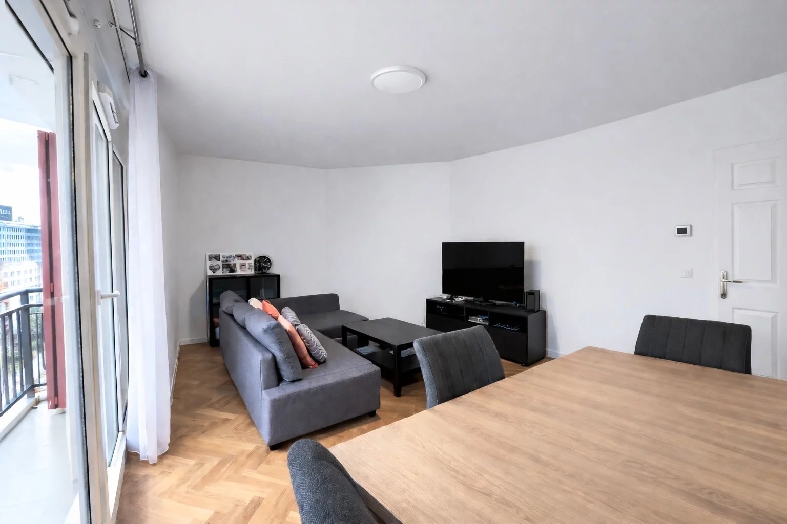 Il bénéficie d'un bon plan composé d'une entrée avec rangements, un séjour-salle à manger sur balcon et une cuisine indépendante avec possibilité d’ouverture permettant de créer une belle pièce de vie d'environ 28 m2. Un espace nuit avec deux chambres et placards, une salle de bains et toilettes séparés avec lave mains.