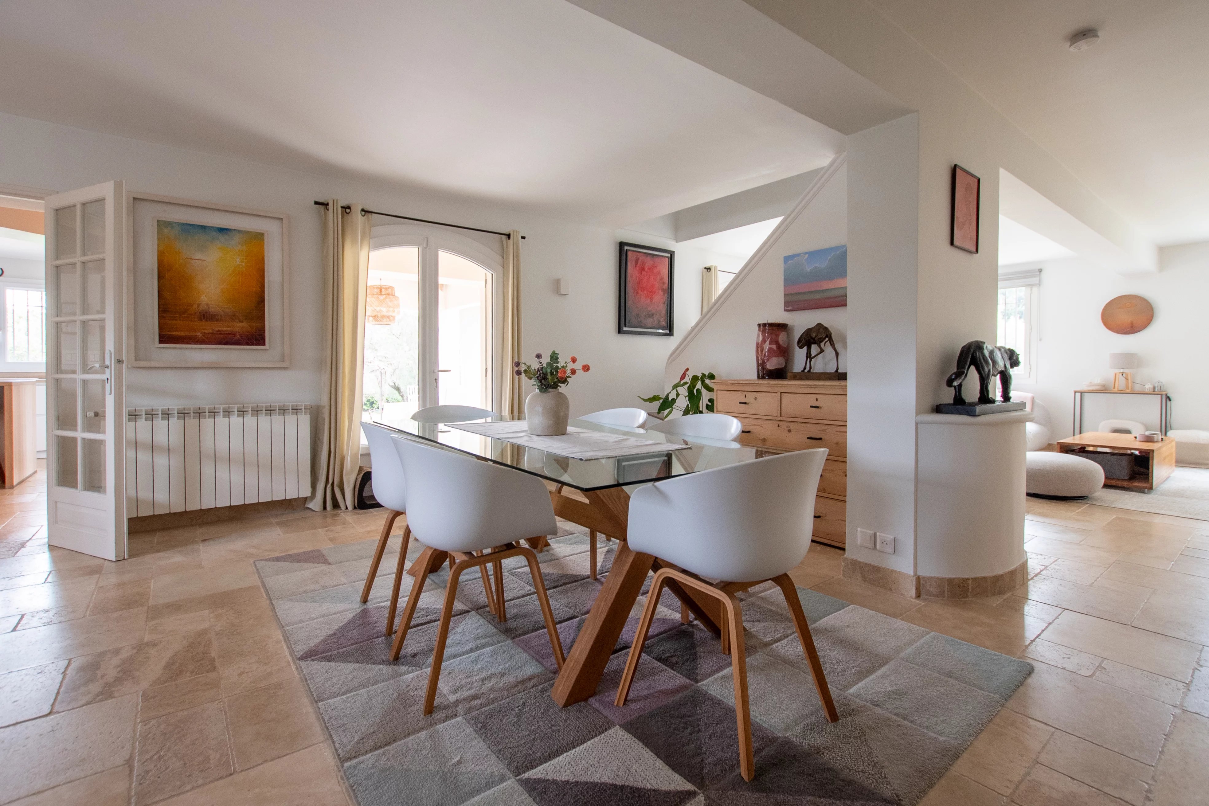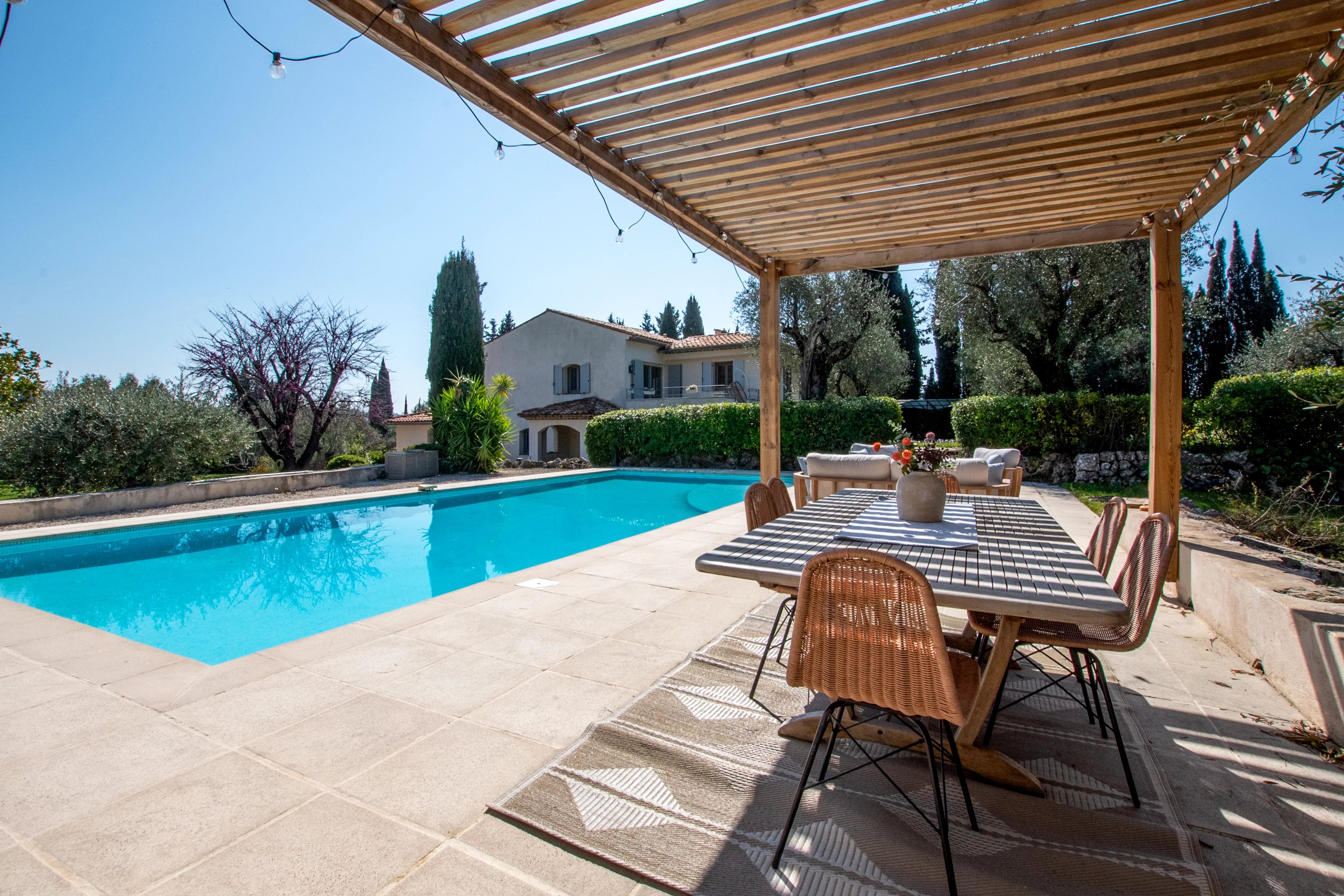 Située dans un quartier calme et recherché de Saint Jean Grasse, cette villa de 240 m² offre un cadre de vie familial haut de gamme à proximité immédiate des écoles internationales, de Sophia Antipolis (20 minutes) et de l'aéroport de Nice (35 minutes). Entièrement rénovée en 2020 et 2021, la propriété allie le charme provençal à une efficacité énergétique moderne, le tout sur un grand terrain plat complanté d'oliviers et d'arbres fruitiers.