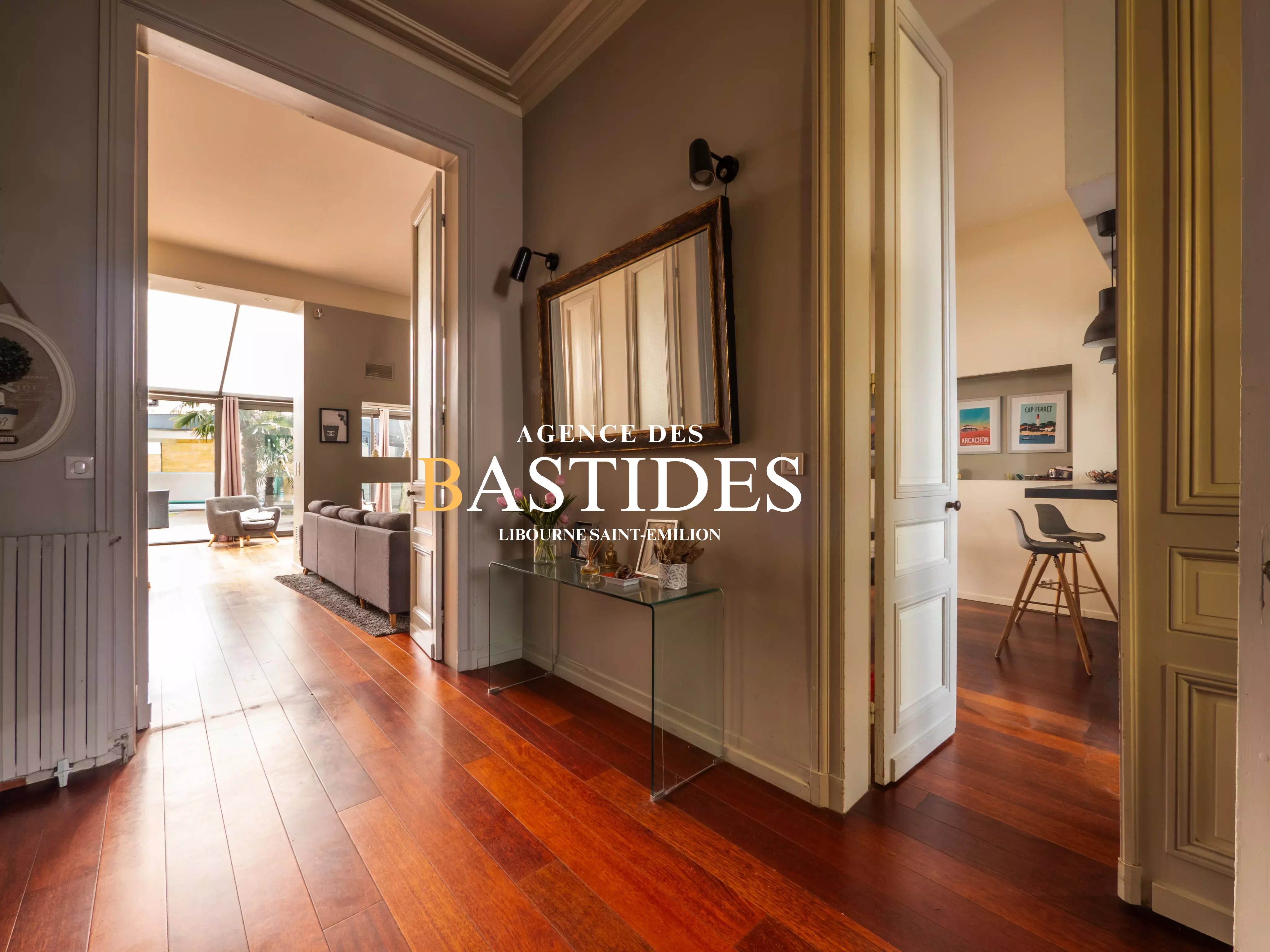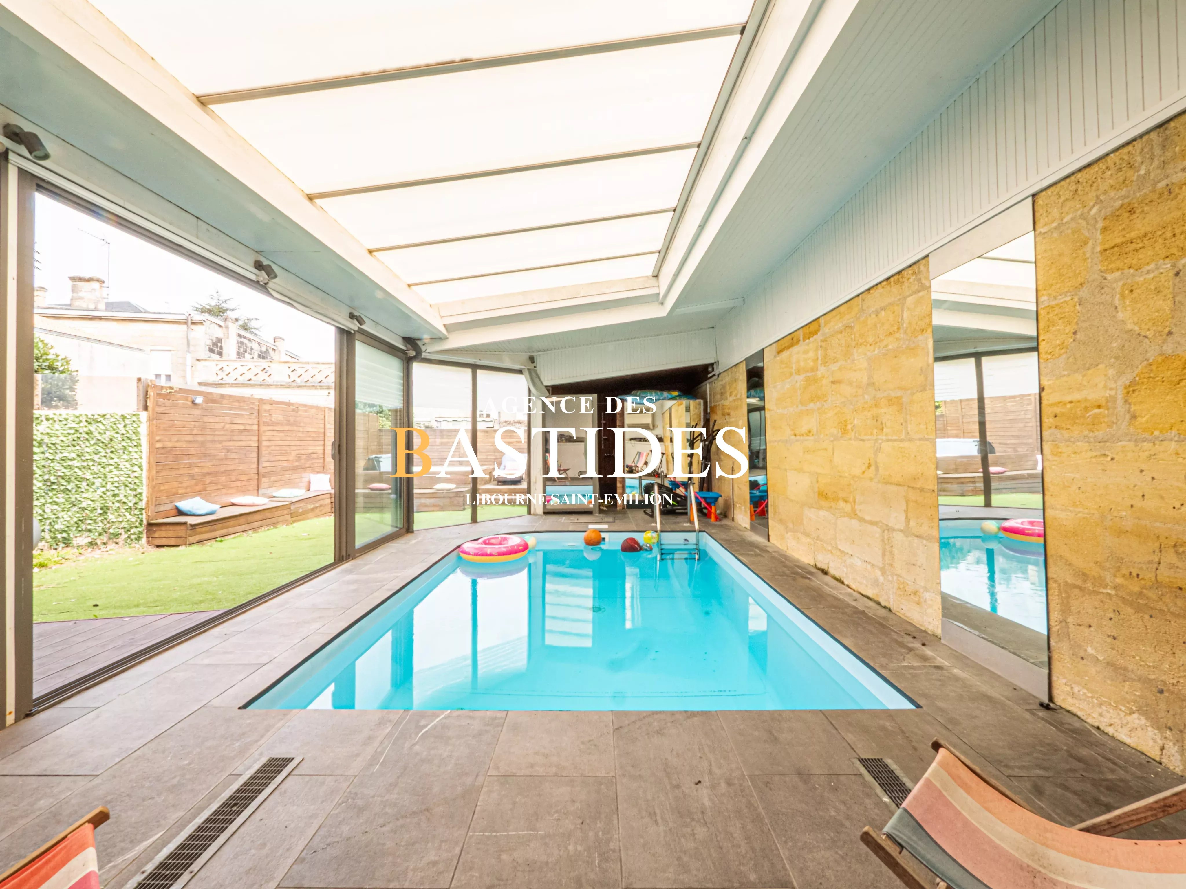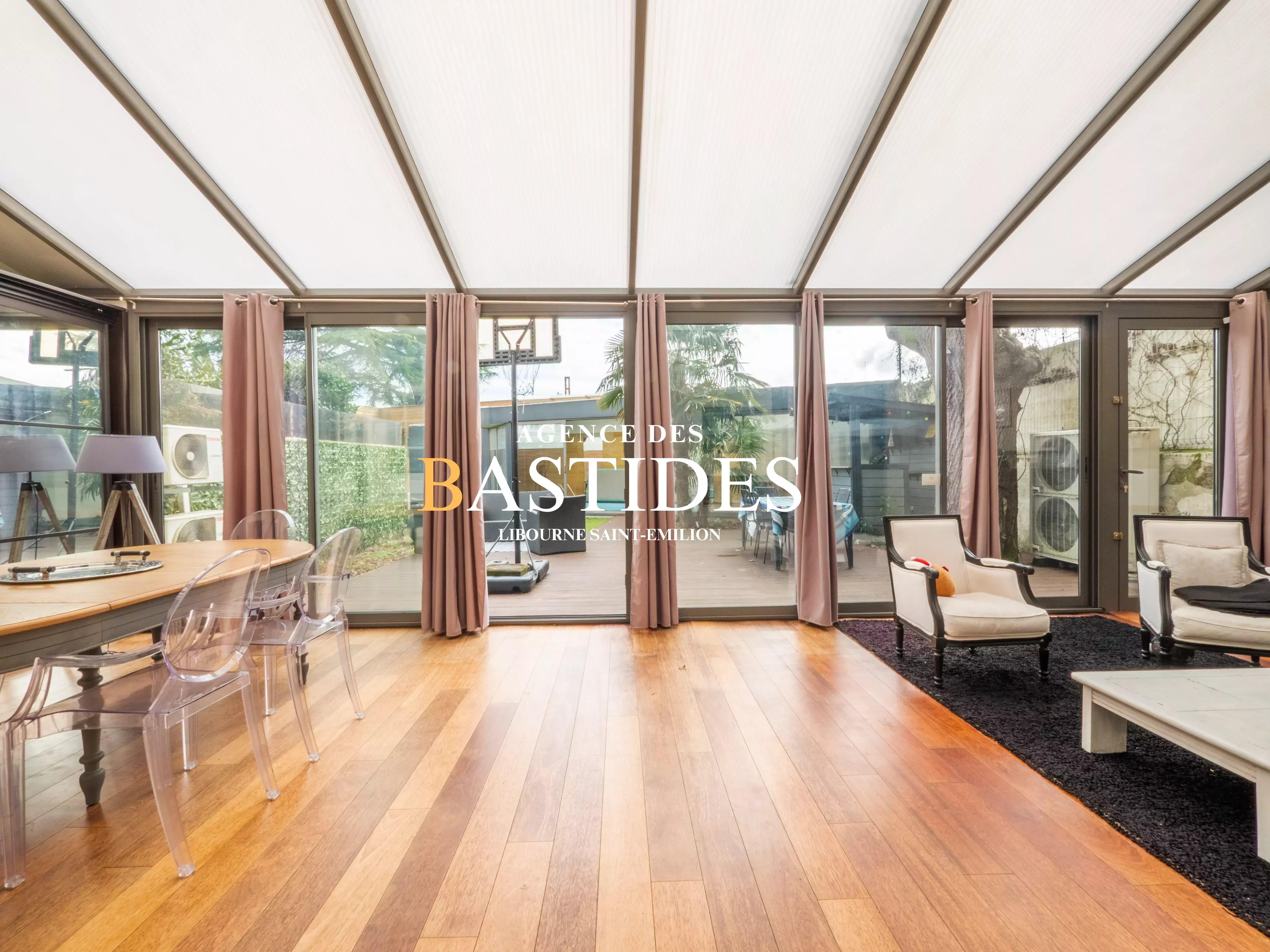 A pied de la gare de Libourne et de toutes les commodités, voici une maison familiale avec espace de vie remarquable d'environ 80m² séjour / véranda / salle à manger / cuisine , traversant EST/OUEST. Très joli palier, entrée séparée, bureau, buanderie et cave. Le premier étage propose 3 chambres toutes avec point d'eau, dont un espace parentale avec dressing / salle de bain douche et WC. Un dernier étage climatisé propose deux chambres, une salle d'eau et une salle de jeu. Terrasse bois, espace détente indépendant avec piscine intérieur et jacuzzi. Garage indépendant. What else ?