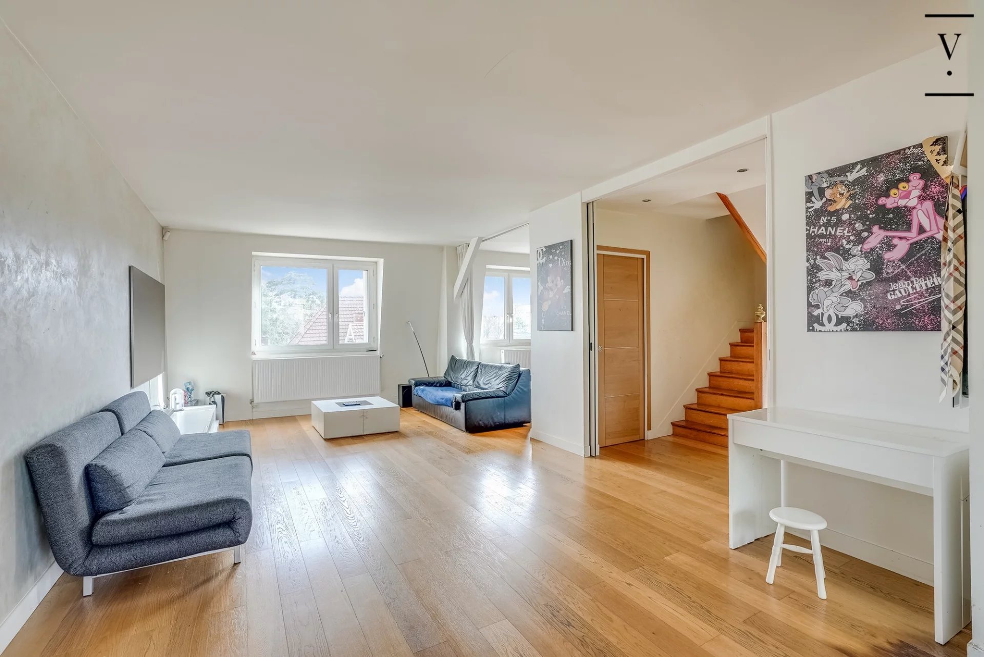 L’Agence Villaret vous propose, dans un secteur recherché et privilégié à deux pas de Roland-Garros, au dernier étage d’un hôtel particulier, un magnifique duplex traversant baigné de lumière de 100m2 au sol et 78m2 carrez. L’appartement se compose, au premier niveau, d’un double séjour avec cuisine ouverte avec une exposition parfaite Est/Ouest, d’un espace chambre/bureau ainsi que d’une salle d’eau avec WC. À l’étage supérieur, vous découvrirez deux chambres et une salle de bains avec WC. Un box est disponible en complément.