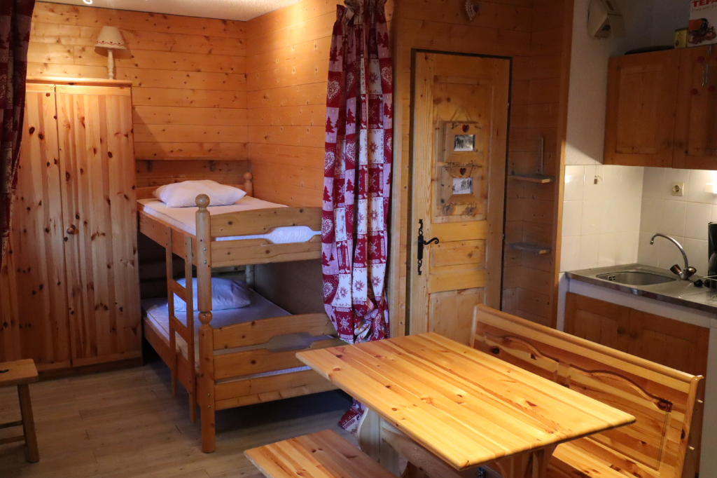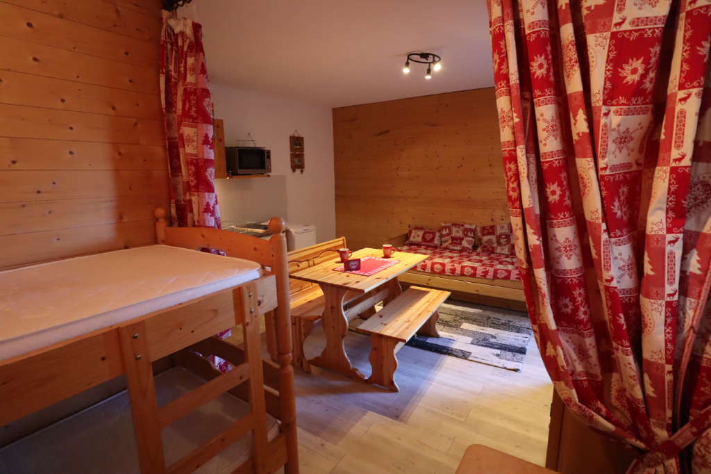 La vie de chalet : dans une résidence de petits chalets à l' orée d'une forêt, AGREABLE STUDIO situé en rez de jardin d'un chalet de 6 appart. Avec son entrée indépendante. Il bénéficie d'une terrasse vue dominante sur le village - Accessible en dehors des périodes enneigées par une route, l' hiver le cheminement se fait à pied en 5 mn. Vendu meublé et équipé pour 4 pers, Pièce à vivre avec coin cuisine aménagé et coin couchage en alcôve, à pied au village - L' hiver on rejoint les remontées mécaniques en ski. PIED A TERRE IDEAL. Copropriété de 155 lots - dont 110 lots habitation. Charges annuelles : 1030 euros.