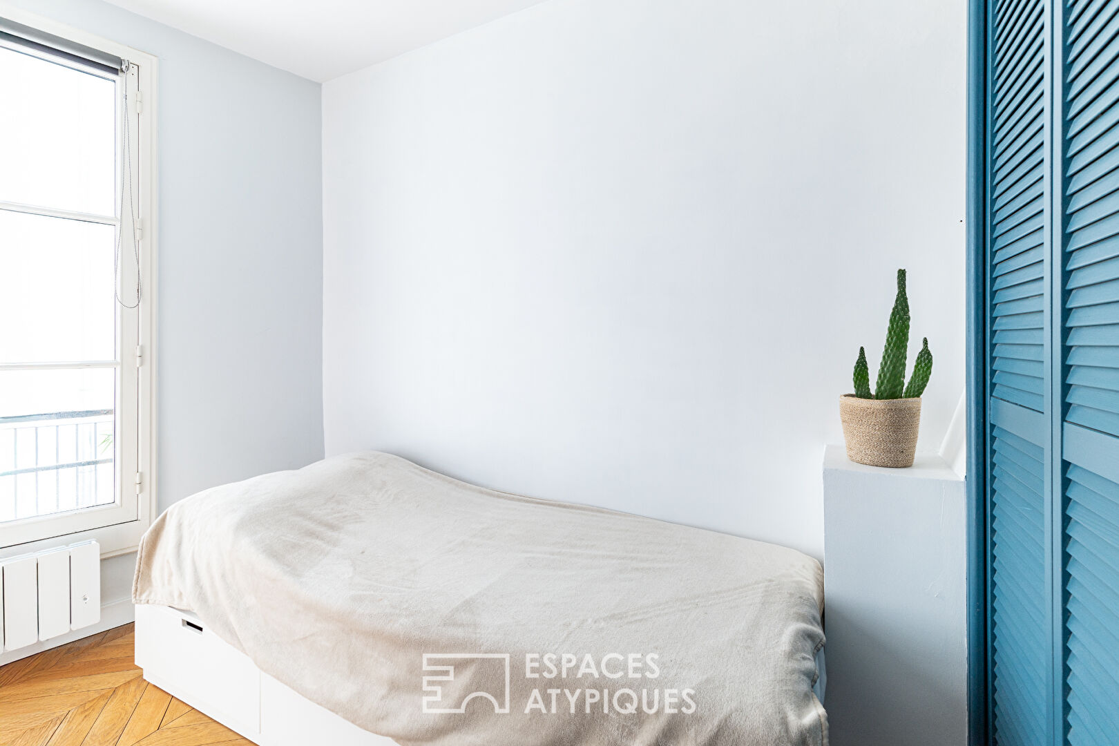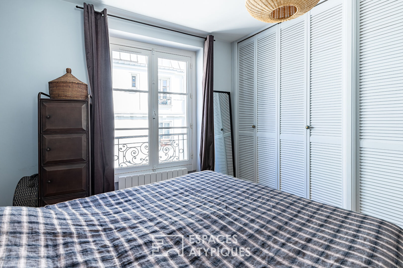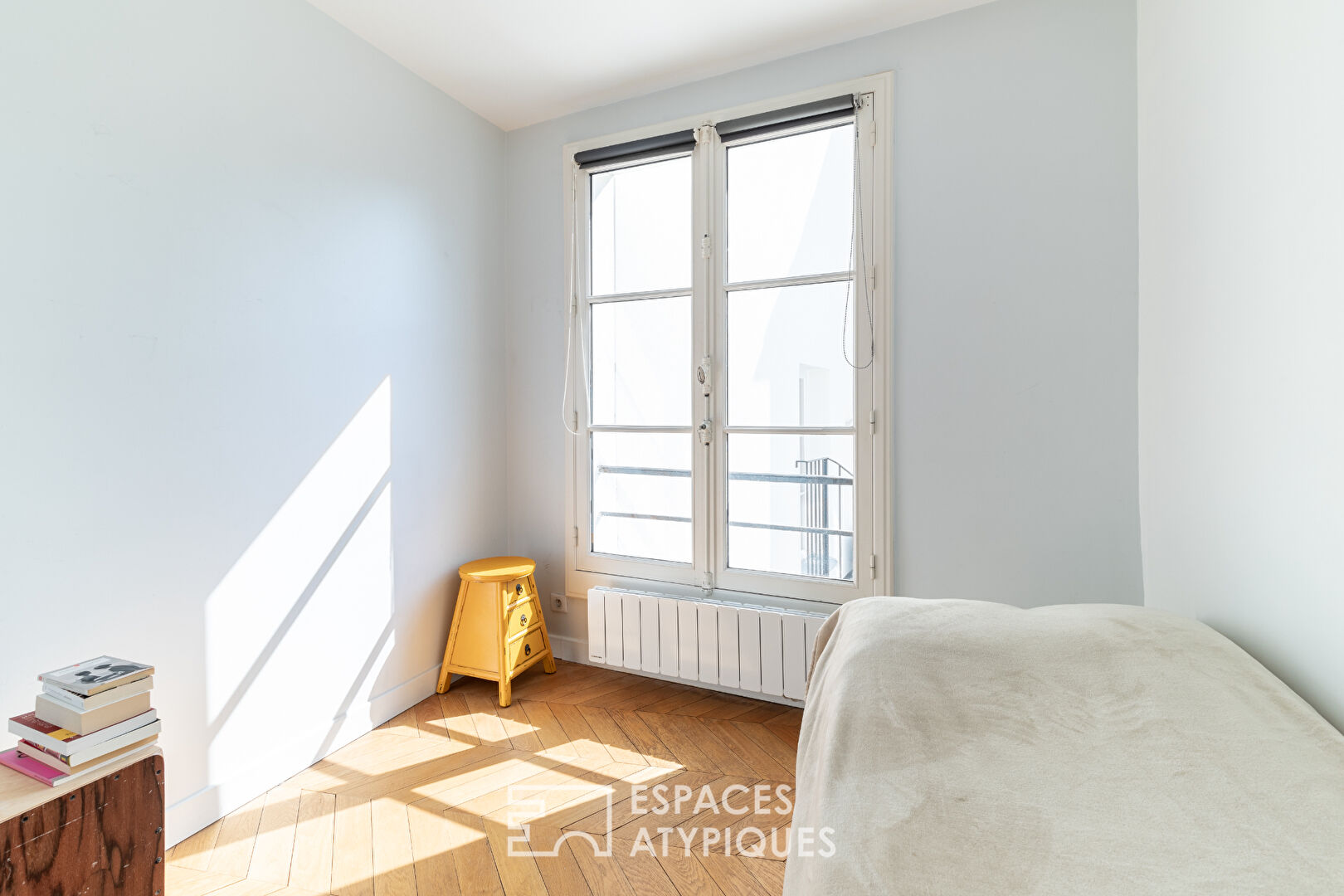 Situé au 4ème étage d'un immeuble ancien sans ascenseur, cet appartement en angle de 73,49 m² (71,46 m2) a fait l'objet d'une rénovation complète et inspirée, orchestrée par un architecte. Niché rue du Faubourg Poissonnière, à deux pas des théâtres, cafés et commerces emblématiques du quartier, ce bien conjugue avec brio le charme de l'ancien et le confort contemporain. Dès l'entrée, la lumière inonde les volumes grâce à une double exposition et de grandes fenêtres ouvertes sur les toits parisiens. L'espace de vie décloisonné accueille une cuisine ouverte au design affirmé, jouant sur des contrastes de matières et de couleurs, et un salon convivial prolongé par une salle à manger. Le parquet en point de Hongrie, les moulures subtiles et la belle hauteur sous plafond rappellent l'élégance des appartements haussmanniens tout en laissant place à une atmosphère résolument moderne. Le plan optimisé distribue trois chambres, parfaites pour une famille ou un couple en quête d'un espace de travail à domicile. Une salle d'eau avec coin buanderie et des toilettes complètent ce bien. Un lieu de vie lumineux, chaleureux et résolument parisien, dans un immeuble à taille humaine, au sein d'un quartier dynamique, bien desservi et en pleine effervescence. Métro : Bonne Nouvelle CLASSE ENERGIE : E / CLASSE CLIMAT : B. Montant moyen estimé des dépenses annuelles d'énergie pour un usage standard, établi à partir des prix de l'énergie de l'année 2021 entre 1780 euros et 2750 euros. Les informations sur les risques auxquels ce bien est exposé sont disponibles sur le site Géorisques : https://www.georisques.gouv.fr Contact : Flavie 06 18 08 66 31 RSAC : 753 302 892 Paris Copropriété de 22 lots - dont 16 lots habitation. Charges annuelles : 1712 euros. Flavie Guignard (EI) Agent Commercial - Numéro RSAC : 753302892 - Paris.