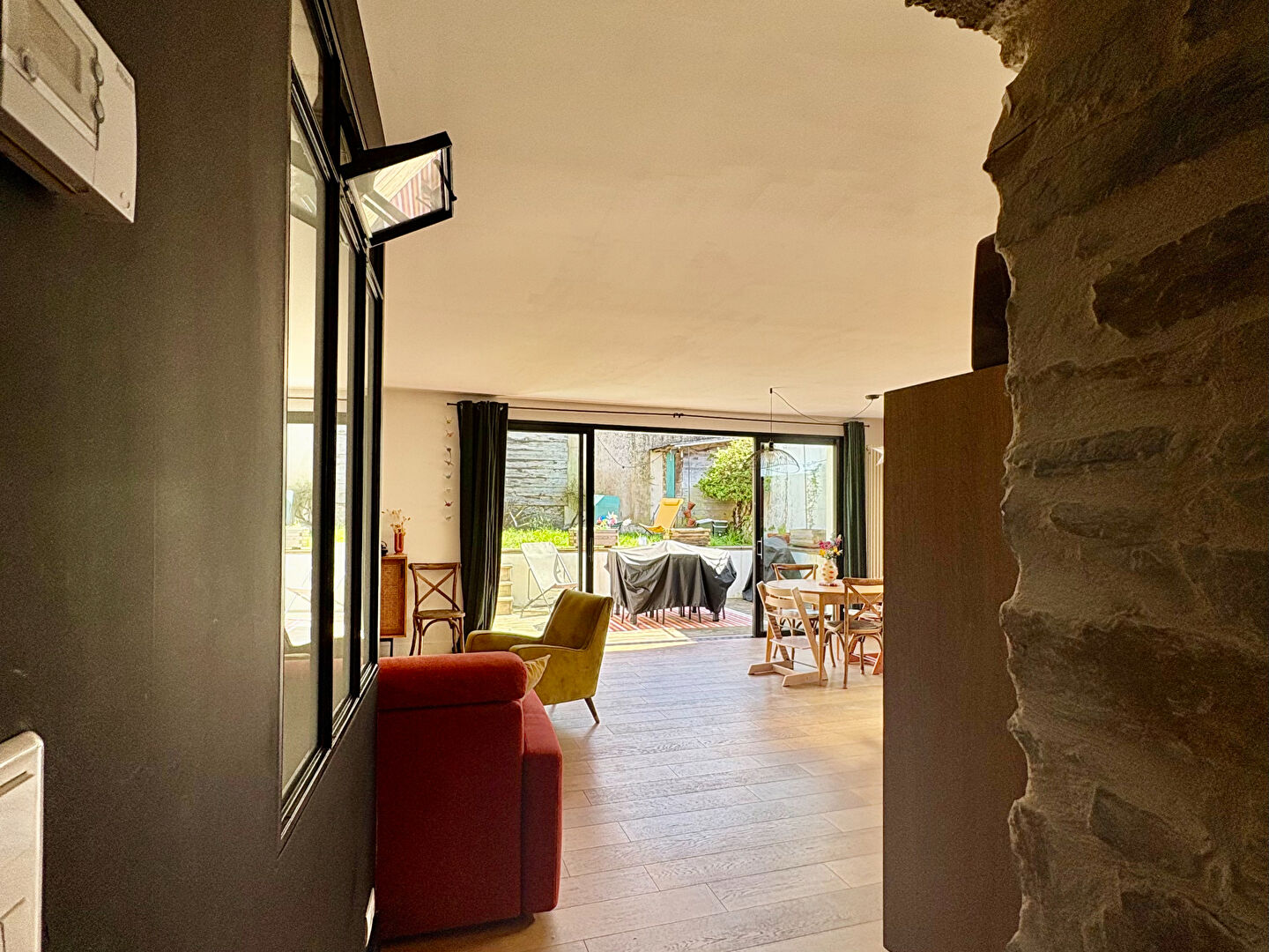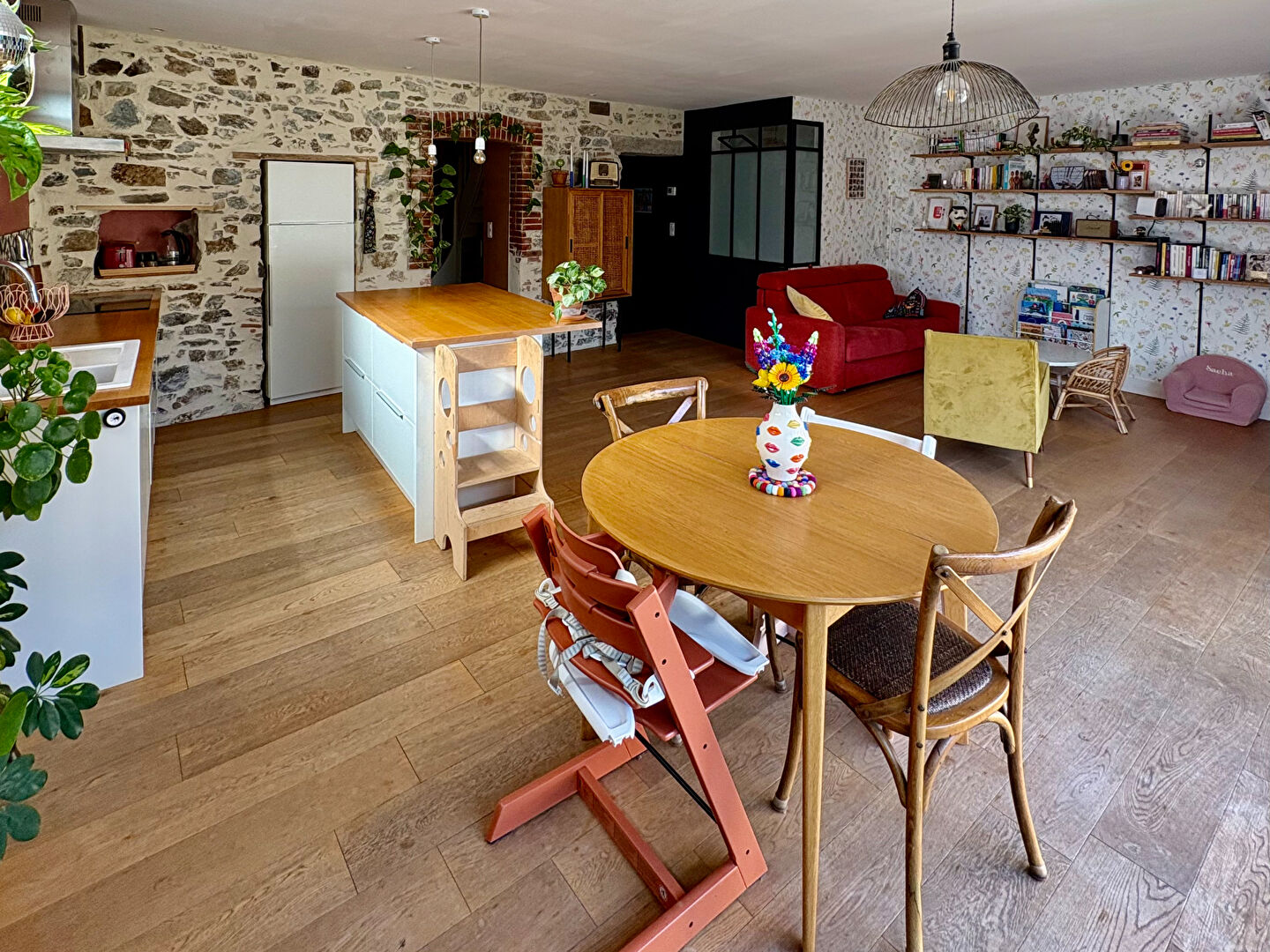En exclusivité - Sud Loire Maison coup de coeur rénovée de 107 m² avec terrasse et jardin sud Située à La Montagne, à proximité de Nantes, cette maison d'environ 107 m² entièrement rénovée avec goût constitue un véritable coup de coeur. Elle séduit immédiatement par son atmosphère chaleureuse et authentique, mêlant avec harmonie pierres apparentes, poutres et parquet en bois massif, tout en offrant le confort d'une rénovation récente et une bonne performance énergétique (DPE C). Dès l'entrée avec placard, la maison dévoile des espaces fonctionnels et agréables à vivre avec un WC indépendant et une salle de bain intégrant un espace lingerie. La pièce de vie, spacieuse et lumineuse, accueille un salon et une salle à manger ouverts sur une cuisine aménagée et équipée avec îlot central, pensée pour la convivialité. Cet ensemble s'ouvre directement sur la terrasse et le jardin exposés plein sud, offrant un cadre idéal pour profiter de la lumière naturelle et des beaux jours. Une chambre avec dressing ainsi qu'un dégagement avec rangements complètent le rez-de-chaussée. A l'étage, l'espace nuit se compose de deux chambres, d'un espace bureau idéal pour le télétravail et d'une salle d'eau avec WC. A l'extérieur, la terrasse et le jardin orientés sud permettent de profiter pleinement des extérieurs tout au long de la journée, avec en complément des espaces de rangement pratiques. Grâce à sa rénovation récente, son charme de l'ancien préservé, sa luminosité et sa performance énergétique appréciable, cette maison offre un cadre de vie confortable et économique. Une opportunité rare pour les acquéreurs recherchant une maison de caractère prête à vivre aux portes de Nantes. Maison coup de coeur à découvrir rapidement. (4.52 % honoraires TTC à la charge de l'acquéreur.)