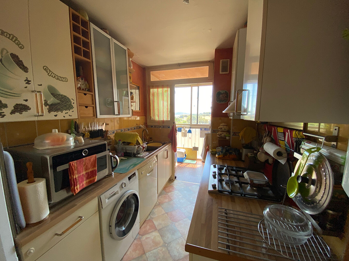 A vendre Toulon, appartement de type 3 très lumineux avec possibilité de réaménagement. Situé au 7ème étage d'une résidence avec ascenseur, bien entretenue et garage privatif. Deux chambres, cuisine indépendante avec loggia, pièce de vie, buanderie, salle de bain, wc séparé, nombreux rangements. Le balcon vous permettra d'admirer la Rade de Toulon. Proximité des écoles primaires et collèges, commerces, et accès rapide à l'autoroute. Copropriété de 30 lots - dont 16 lots habitation. Charges annuelles : 1300 euros. Stéphane WHITE (EI) Agent Commercial - Numéro RSAC : 788451953 - MARSEILLE.