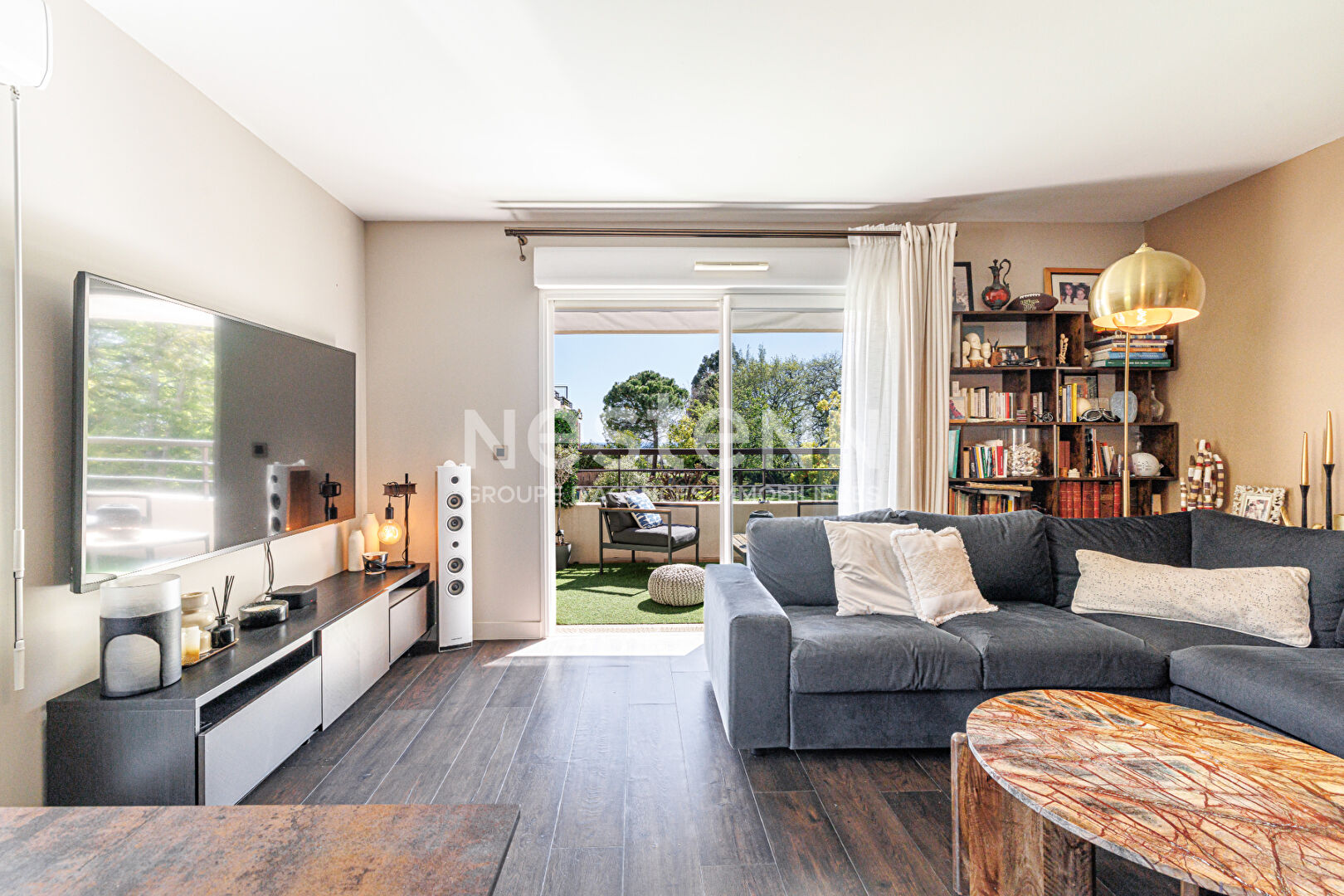 EXCLUSIVITÉ -A VENDRE - 3 PIECES - NICE CORNICHE FLEURIE - TERRASSE D'ANGLE 22 m² - DERNIER ÉTAGE - PISCINE et PARC PRIVÉ - PARKING PRIVATIF EN SOUS-SOL Dans résidence récente, sécurisée et arborée avec piscine, superbe appartement 3 pièces en dernier étage au calme absolu, lumineux exposé Sud avec vue sur le parc paysager de la copropriété. Entièrement rénové récemment, il offre des prestations soignées et un niveau de confort immédiat, sans travaux à prévoir. Cet appartement en excellent état est composé d'une entrée avec placard aménagé, d'un séjour avec cuisine ouverte de 28 m², ouvrant sur une belle terrasse d'angle de 22 m², sans vis-à-vis, avec une vue dégagée sur le parc arboré de la copropriété. La partie nuit comprend deux chambres, dont une avec grande salle d'eau attenante, intégrant un espace buanderie dédié et un accès direct à un balcon de 6 m². Une seconde salle d'eau ainsi qu'un WC indépendant avec lave-mains complètent l'ensemble. Climatisation réversible. Un PARKING PRIVATIF EN SOUS SOL de 17 m² inclus dans le prix complète ce bien. Il permet le stationnement d'une voiture, d'une moto et offre un espace de stockage confortable. Possibilité d'acquérir un second parking en sus. La copropriété dispose également d'un stationnement collectif réservé aux résidents, ainsi que d'une oliveraie privée d'environ 2 500 m², accessible uniquement aux copropriétaires, un cadre exceptionnel réservé, idéal pour se détendre ou se promener. A proximité des écoles. Chauffage individuel. Eau chaude collective. Classe énergie C - Classe climat A. Une opportunité à saisir ! Contactez-moi pour plus d'informations ou pour programmer une visite.