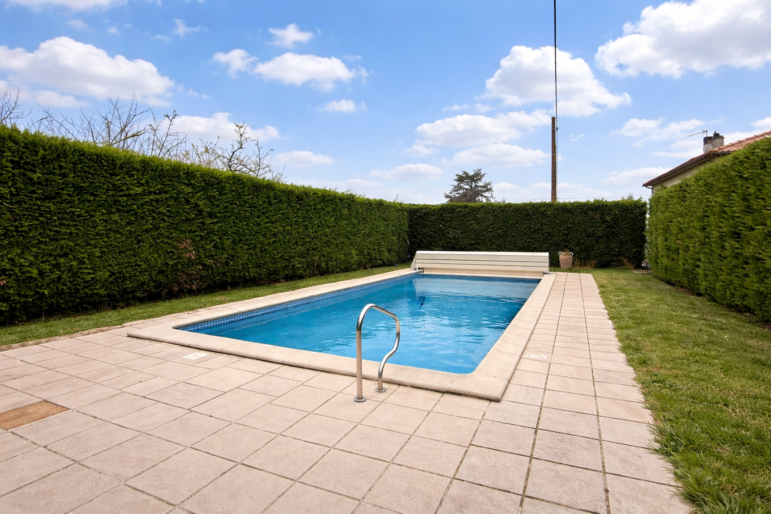 Pour tout renseignement ou visite, contacter Christine Boussaha-Iod au 06.85.98.96.11 EN EXCLUSIVITÉ A Saint-Sylvestre, dans un secteur recherché et paisible, découvrez cette agréable maison de plain-pied d'environ 92m², implantée sur un terrain sans vis-à-vis de 1 338 m², avec dépendance d'environ 50m² (garage, studio) et piscine. La maison principale se compose d'une entrée desservant un salon-séjour lumineux avec insert, offrant un accès direct à la terrasse, idéal pour profiter des beaux jours. Vous trouverez également une cuisine indépendante avec accès au garage. Un dégagement mène à la partie nuit comprenant deux chambres, une salle de bains et un WC indépendant. Une dépendance non attenante vient compléter l'ensemble. Elle se compose d'une cuisine, d'une chambre, d'une salle d'eau, d'un WC, d'une terrasse et d'un garage, offrant un espace parfait pour accueillir famille et amis, créer un logement indépendant ou envisager un projet locatif. A l'extérieur, vous profiterez d'un terrain de 1 338 m² avec une piscine au chlore (10x4.5), idéal pour des moments de détente en toute tranquillité, portail électrique. Les atouts : double vitrage bois, volets bois, isolation par le toit et les murs, panneaux solaires, adoucisseur, tout à l'égout, taxe foncière 1471 euros (7.08 % honoraires TTC à la charge de l'acquéreur.)