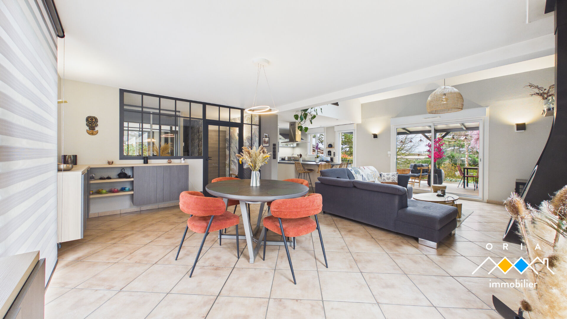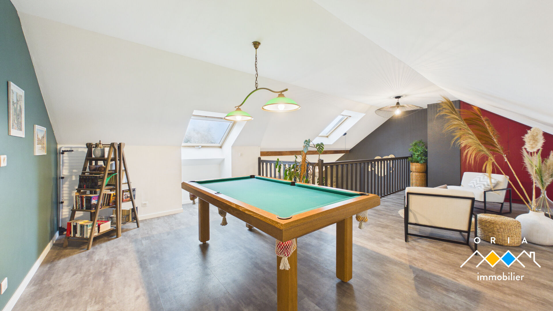 ORIA IMMOBILIER PULNOY vous présente : Cette belle maison individuelle située dans une impasse calme sur la commune de Cerville à 2 minutes de PULNOY, à proximité immédiate de la première couronne de Nancy. Construite en 1999, cette maison développe environ 190 m² habitables (240 m² au total avec le garage double, la buanderie et l'atelier) et est implantée sur un terrain clos et arboré de 806 m², offrant un cadre de vie privilégié, sans vis-à-vis, idéal pour les amateurs de tranquillité. Les extérieurs particulièrement soignés constituent un véritable atout. Vous profiterez d'un agréable jardin paysager avec une piscine creusée à l'arrière de la maison. Une grande terrasse sous pergola permet de profiter pleinement des beaux jours. Un appentis offre un espace abrité pour du rangement ou du stockage et une cabane de jardin située au fond du terrain permet de ranger facilement mobilier de jardin et outils. Dès l'entrée, vous découvrirez un grand hall avec placards intégrés desservant une spacieuse et lumineuse pièce à vivre ouverte sur une cuisine équipée. Cet espace de vie convivial bénéficie d'une belle hauteur sous plafond avec vue sur la mezzanine et d'un accès direct au jardin et à la terrasse. Le rez-de-chaussée dispose d'un chauffage au sol complété par un poêle à bois qui apporte une atmosphère chaleureuse à l'ensemble. La maison est organisée sur plusieurs demi-niveaux. Le premier demi-niveau accueille trois chambres confortables disposant chacune de placards sur mesure réalisés par menuisier, une salle de bain ainsi qu'une salle d'eau et un WC séparé. Le deuxième demi-niveau donne accès à une agréable mezzanine ouverte sur la pièce de vie, permettant d'aménager différents espaces de détente comme un coin salon, un coin billard ou un espace lecture, avec également des rangements. Le troisième demi-niveau dessert une suite parentale avec placards et meubles sur mesure donnant accès à une salle d'eau privative comprenant une baignoire et un WC. Un demi-niveau inférieur propose une buanderie ainsi qu'une pièce actuellement aménagée en salle de sport et un grand garage. Enfin, le vide sanitaire a été réhabilité afin de créer un espace supplémentaire de stockage et un coin atelier très pratique. La maison est équipée de fenêtres en double vitrage PVC avec volets roulants électriques. Le système de chauffage est assuré par une chaudière gaz à condensation. Maison individuelle, au calme, avec de beaux volumes et des prestations de qualité, située dans un environnement recherché proche de Nancy. Un bien rare sur le secteur à découvrir rapidement. Contactez ORIA Immobilier pour organiser une visite et découvrir tout le potentiel de ce bien. Les informations sur les risques auxquels ce bien est exposé sont disponibles sur le site Géorisques : www.georisques.gouv.fr Théo MAHEVAS (EI) Agent Commercial - Numéro RSAC : 981 528 151 - NANCY.