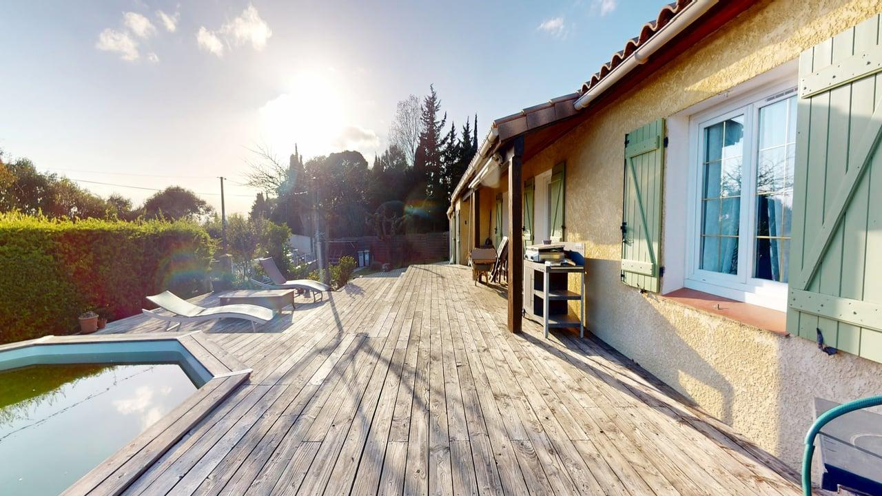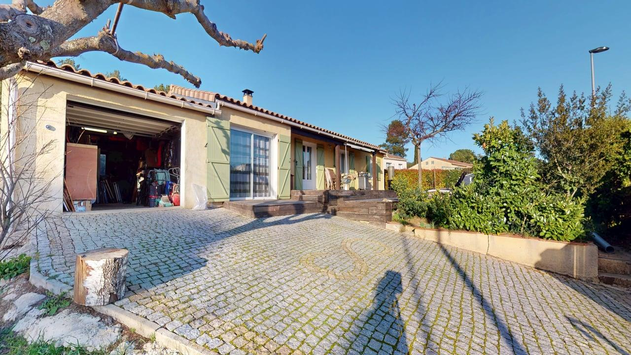 En exclusivité à Villemoustaussou, dans un quartier calme et recherché, découvrez cette maison de plain-pied 4 faces d'environ 104 m² habitables, implantée sur un terrain de 770 m² avec piscine, offrant un cadre de vie agréable et une maison en très bon état général. La maison propose une distribution fonctionnelle avec une cuisine aménagée et équipée ouverte sur la salle à manger, agrémentée d'un poêle à bois, un séjour indépendant, quatre chambres, une salle d'eau et un WC indépendant. Un cellier-buanderie ainsi qu'un garage de 34 m² viennent compléter l'ensemble, apportant un réel confort d'organisation au quotidien. A l'extérieur, le jardin invite à la détente avec une terrasse en bois et une piscine semi-enterrée, dans un environnement paisible où la configuration 4 faces garantit luminosité et intimité. La propriété permet également de stationner deux véhicules à l'intérieur grâce à son portail automatique. La maison bénéficie de prestations confortables avec menuiseries PVC double vitrage, bonne isolation thermique attestée par un classement énergétique C, et offre un cadre de vie immédiatement agréable sans travaux à prévoir. Un bien fonctionnel, lumineux et situé dans un secteur apprécié, avec visite virtuelle disponible pour découvrir l'ensemble des espaces avant une visite sur place.