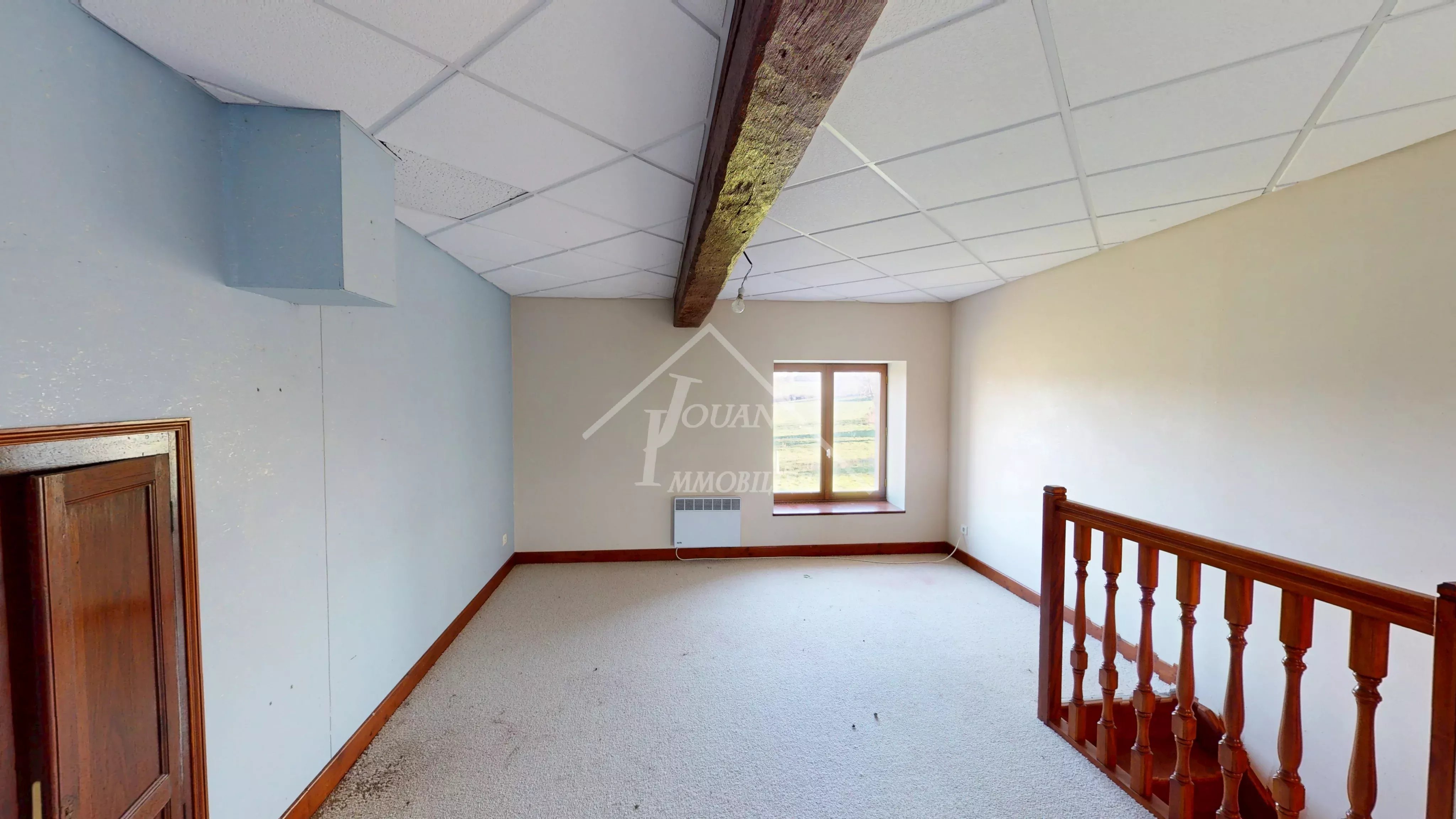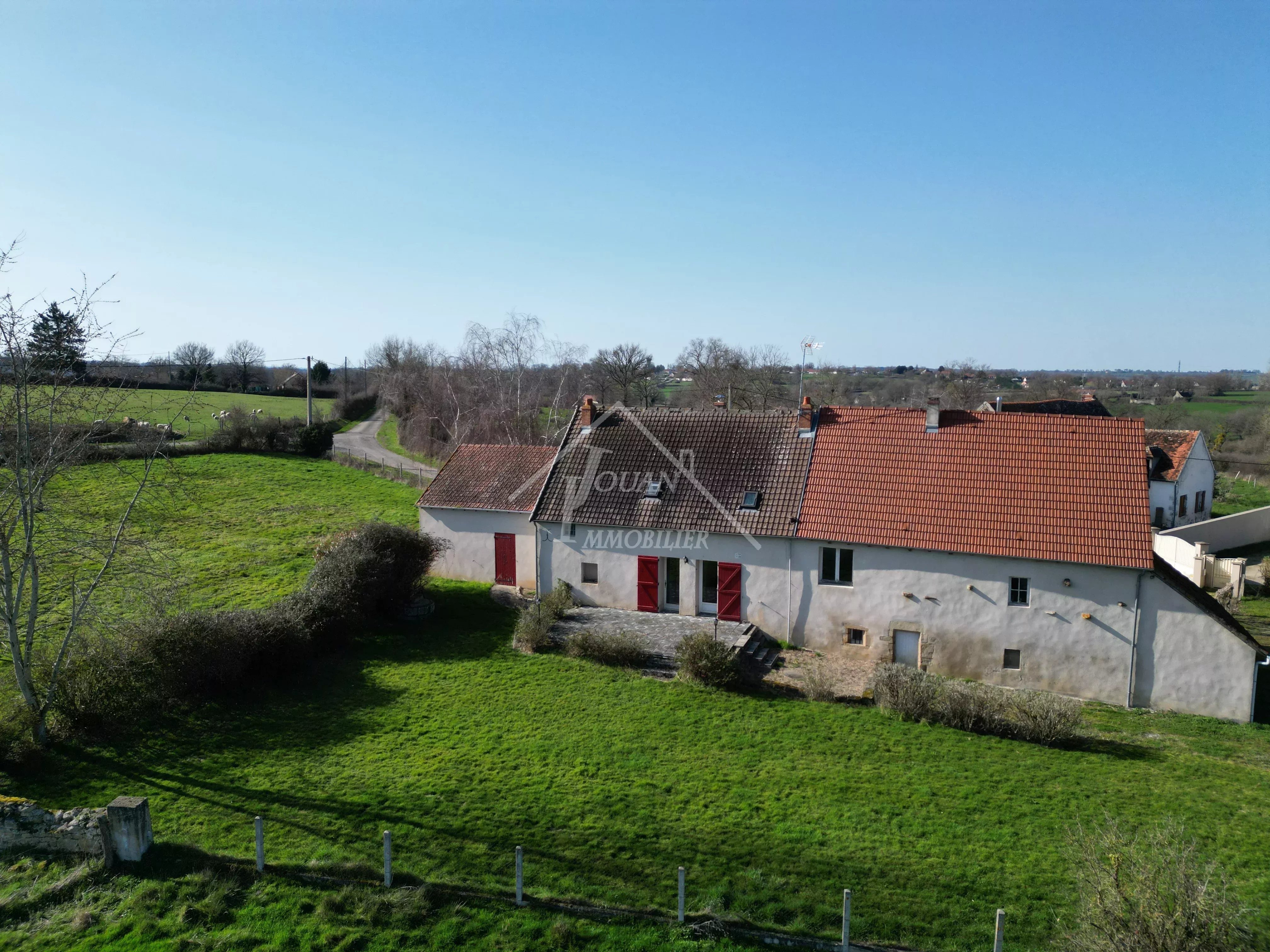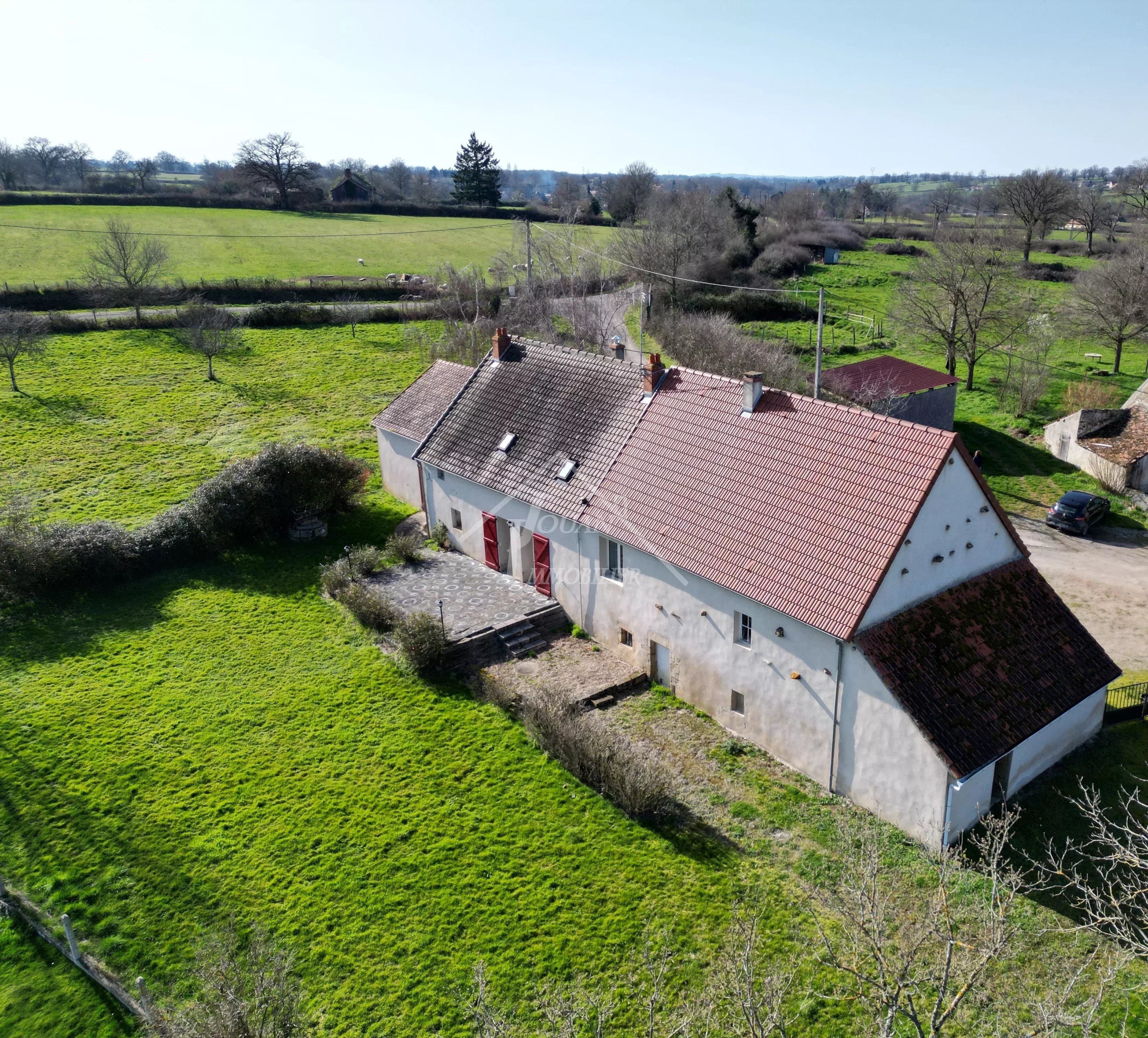 À vendre à la campagne de Bourbon-l'Archambault, dans un petit hameau composé de quelques maisons, découvrez cette belle maison familiale, spacieuse et lumineuse — le lieu parfait pour trouver l’équilibre entre la proximité de la ville et le calme de la campagne. Implantée sur un terrain de plus de 3 400 m² avec jardin et puits, la maison se compose : Au rez-de-chaussée : Une grande pièce de vie chaleureuse avec insert bois Une cuisine ouverte sur la salle à manger Depuis la cuisine, accès direct à une belle terrasse avec vue dégagée sur le bocage, idéale pour profiter des beaux jours En montant 5 marches : une première chambre En descendant 5 marches : une buanderie et une cave Un petit hall avec toilettes et espace de rangement avant l’accès à l’étage À l’étage : Un palier desservant 3 chambres Une salle de bain avec douche et toilettes Toutes les menuiseries sont en double vitrage. L’étage nécessiterait un léger rafraîchissement selon vos goûts, vous laissant la possibilité de personnaliser les espaces à votre image. Assainissement individuel non conforme. Dépendances : À gauche de la maison : un grand garage avec étage, idéal pour le stockage, ainsi qu’un débarras pour le bois À droite : un second garage pouvant également faire office d’atelier selon vos besoins Une maison idéale pour une famille recherchant le calme et la tranquillité. Belle opportunité pour un magnifique emplacement ! La maison, dont la construction date d’il y a bien 100 ans, a subi quelques fissures (côté droit). Celles-ci ne sont pas dues à la sécheresse, mais seraient possiblement liées à l’agrandissement du garage / à un léger affaissement naturel avec le temps. Une visite virtuelle est à votre disposition. Les informations sur les risques auxquels ce bien est exposé sont disponibles sur le site Géorisques: www.georisques.gouv.fr
