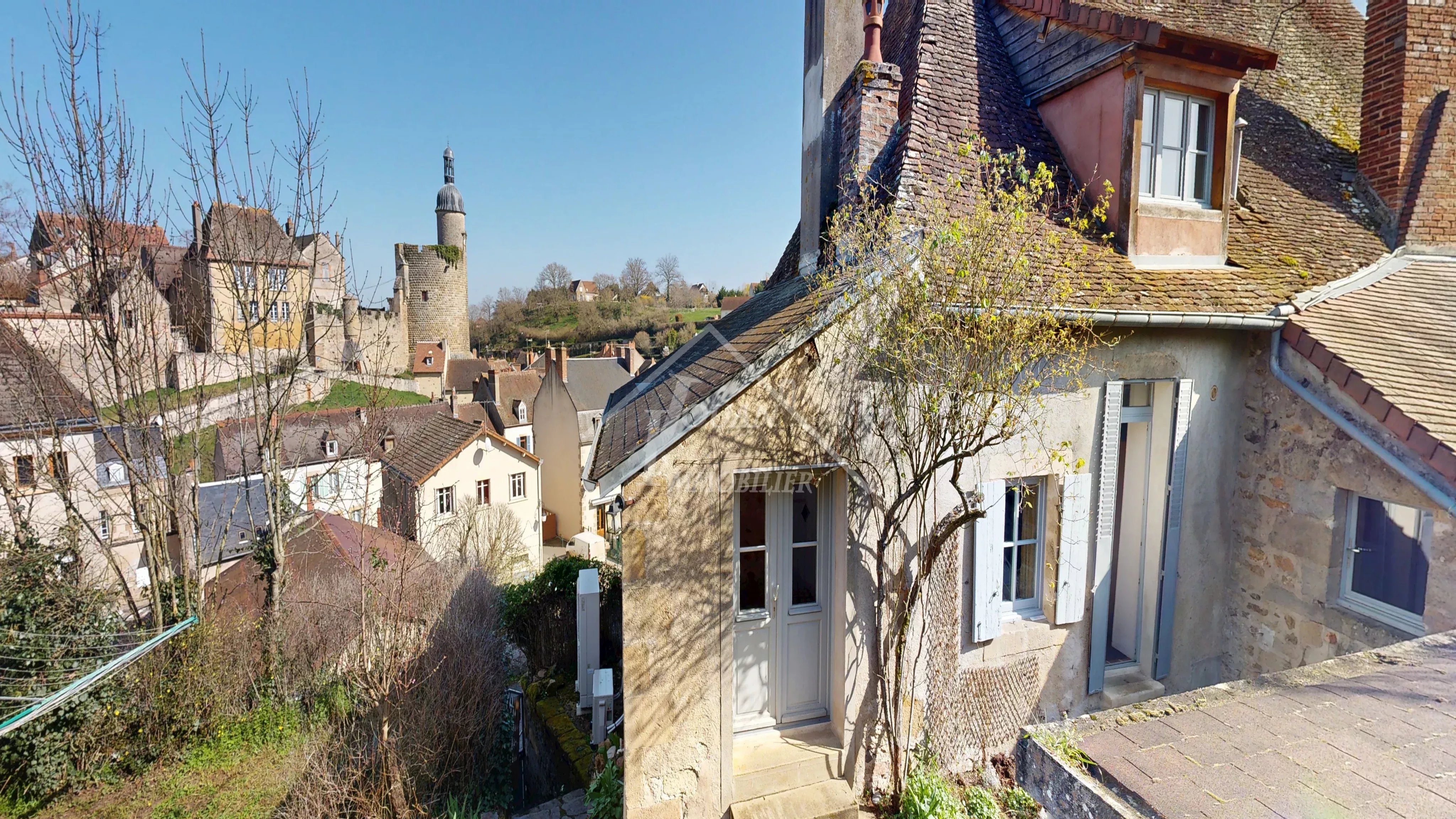 Au cœur du village de Bourbon-l'Archambault, découvrez cette perle rare : une maison sur trois niveaux avec un adorable jardin offrant une vue dominante sur le site historique ! Sa configuration atypique et sa rénovation soignée, réalisée avec des matériaux nobles et écologiques, séduiront ceux à la recherche d’une maison saine et chaleureuse. La maison se compose comme suit : De plain-pied, une entrée ouvre sur un grand séjour lumineux, une salle de bains avec toilettes et une chambre. Au-dessus de celle-ci, une grande mezzanine, idéale pour un coin bureau ou un dressing. Un bel escalier mène au premier étage où l’on trouve une cuisine moderne et équipée, ouverte sur une grande pièce de vie avec insert à bois. À ce niveau se situe également une chambre avec sa salle d’eau et des toilettes séparées. La pièce de vie ainsi que la chambre disposent chacune d’un accès direct à la terrasse du jardin, un endroit romantique où le moindre rayon de soleil invite à s’installer dehors ! Au deuxième étage, une grande chambre complète l’ensemble. La partie du rez-de-chaussée, comprenant la chambre, sa mezzanine ainsi que la salle de bains avec toilettes, peut également être séparée du reste de la maison et rendue indépendante afin de proposer un espace pour une activité professionnelle, une location pour curistes, ou encore une activité de gîte ou de chambre d’hôtes. À l’extérieur, un magnifique jardin en terrasses, fleuri et ombragé, sans aucun vis-à-vis, offrant l’une des plus belles vues imprenables de Bourbon ! Vous cherchiez à vous rapprocher de Bourbon tout en évitant la circulation, tout en profitant d’une autonomie à pied par rapport aux commerces ? Ceci est votre futur chez-vous ! Local technique / buanderie. Double vitrage – Pompe à chaleur – Chauffage au sol dans toutes les pièces – Isolation en laine de lin – Enduits à la chaux – Pierres et poutres apparentes. Un produit rare, sans aucun travaux à prévoir, à deux pas de tous les commerces et des Thermes. Une visite virtuelle est à votre disposition. Les informations sur les risques auxquels ce bien est exposé sont disponibles sur le site Géorisques: www.georisques.gouv.fr