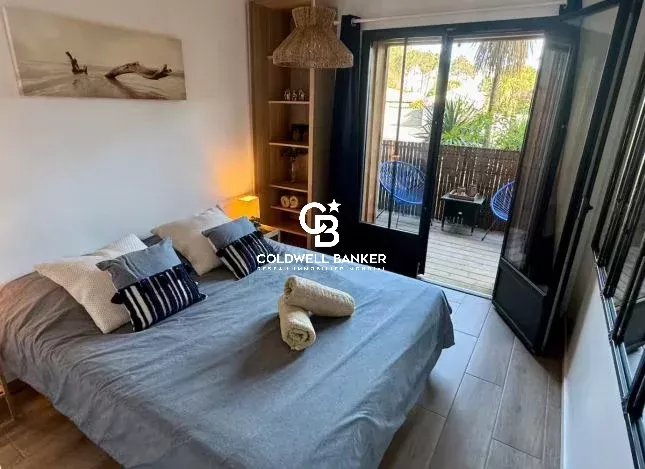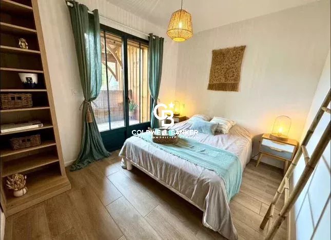 Coldwell Banker Immoba Realty Agence Immobilière d'Andernos-les-Bains vous présente, à Lège Bourg, et à quelques minutes de l'océan du du bassin d'Arcachon, un bien rare au charme incomparable, cet appartement de plain-pied allie le confort d'une maison et le privilège d'un environnement naturel. Dés l'entrée, vous serez séduit par une belle pièce de vie baignée de lumière, avec cuisine ouverte sur le salon, prolongée par une superbe véranda chauffée offrant une vue apaisante sur la forêt. Côté nuit, vous trouverez deux chambres ouvrant sur une terrasse bois, une salle de bains et toilettes indépendants. A l'extérieur, le coup de cœur est immédiat : - un jardin privatif en lisière de forêt, - une élégante terrasse bois, - un jacuzzi parfaitement intégré pour des moments de détente uniques. Prestations de qualité, chauffage au sol, deux places de parking privatives. Ce bien à fort potentiel de rendement locatif peut être vendu meublé et équipé, également idéal pour un pied-à-terre sur le Bassin, entre nature, élégance et sérénité, un lieu rare ou l'on déconnecte totalement du quotidien. Bien soumis au statut de la copropriété Surface carrez : 72.25 m² Le bien fait partie d’une petite copropriété de 4 lots d'habitation, sans espaces communs ni charges de copropriété. Montant annuel des charges : 0 € Aucune procédure en cours : Non Informations techniques : DPE : C (105 Kwh/m²/an) - GES : B (18 KgCO²/m²/an) Estimation des coûts annuels d’énergie du logement entre 913 € et 1 235 € par an. Prix moyens des énergies indexés sur les années 2021, 2022 et 2023 (abonnements compris) Les informations sur les risques auxquels ce bien exposé sont disponibles sur le site www.georisques.gouv.fr Prix : 449 000 € honoraires 4.9 % inclus à la charge acquéreur soit 21 381 € TTC Prix net vendeur : 427 619 € Pour plus d'informations, contactez Christine HAUER RSAC n° 494 327 679 RCP n° 25032648 Retrouvez tous nos biens sur IMMOBA.FR