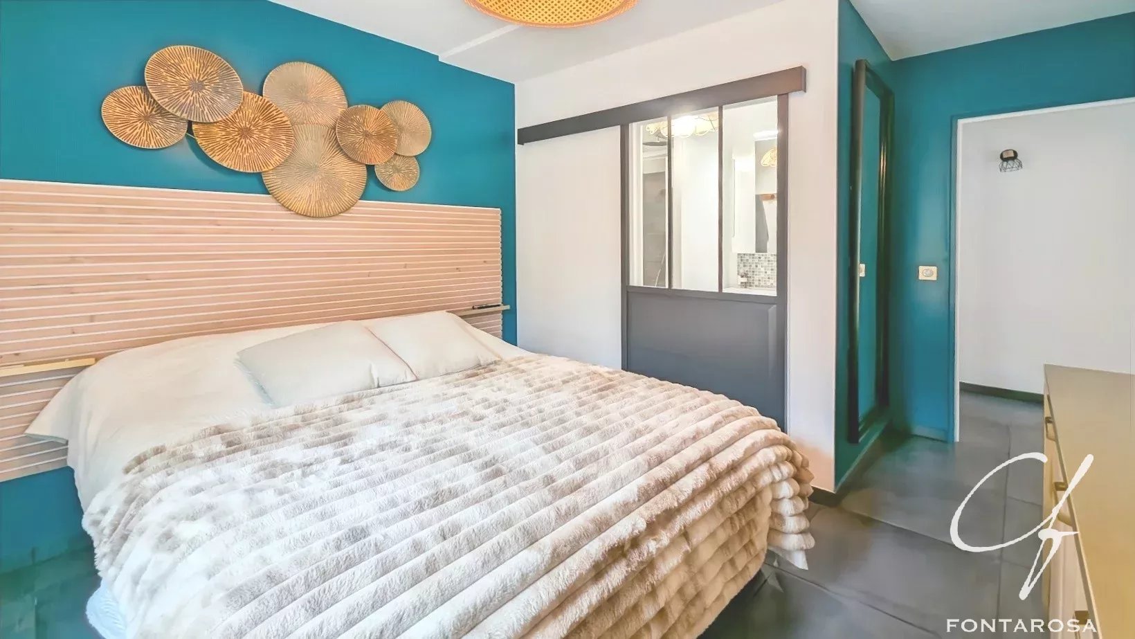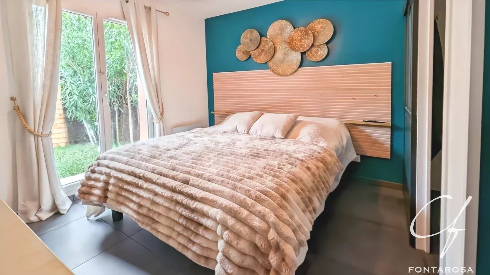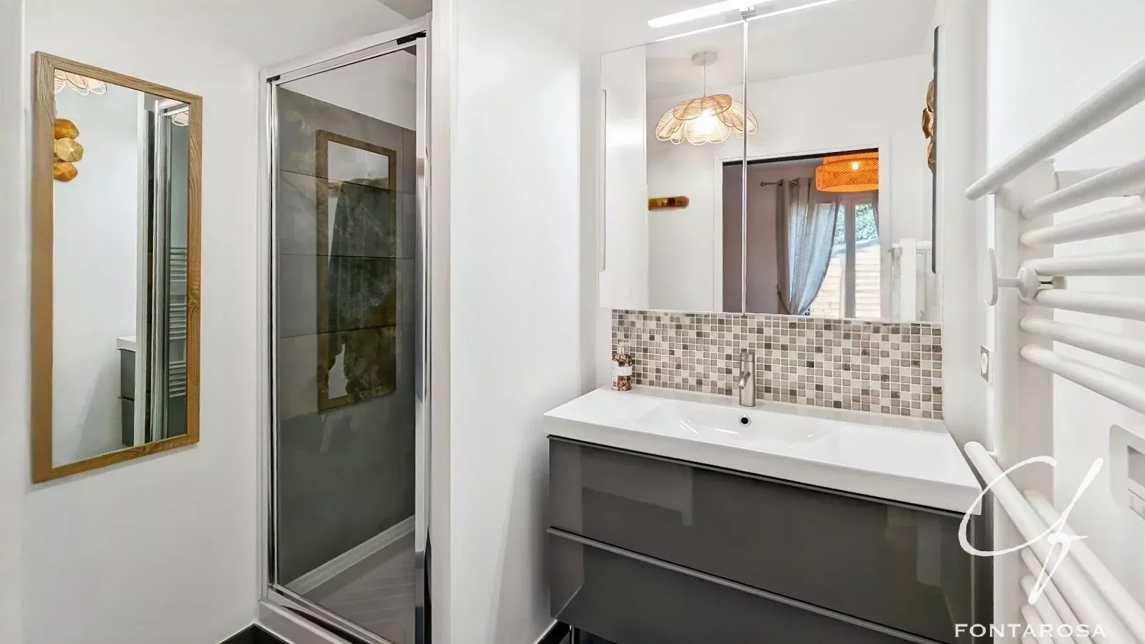À l’étage, l’espace nuit se complète avec deux chambres supplémentaires et une salle de bain équipée d’une baignoire balnéo, apportant confort et bien-être au quotidien.