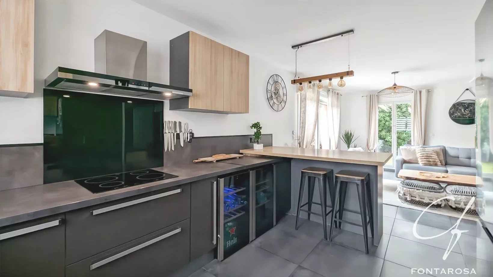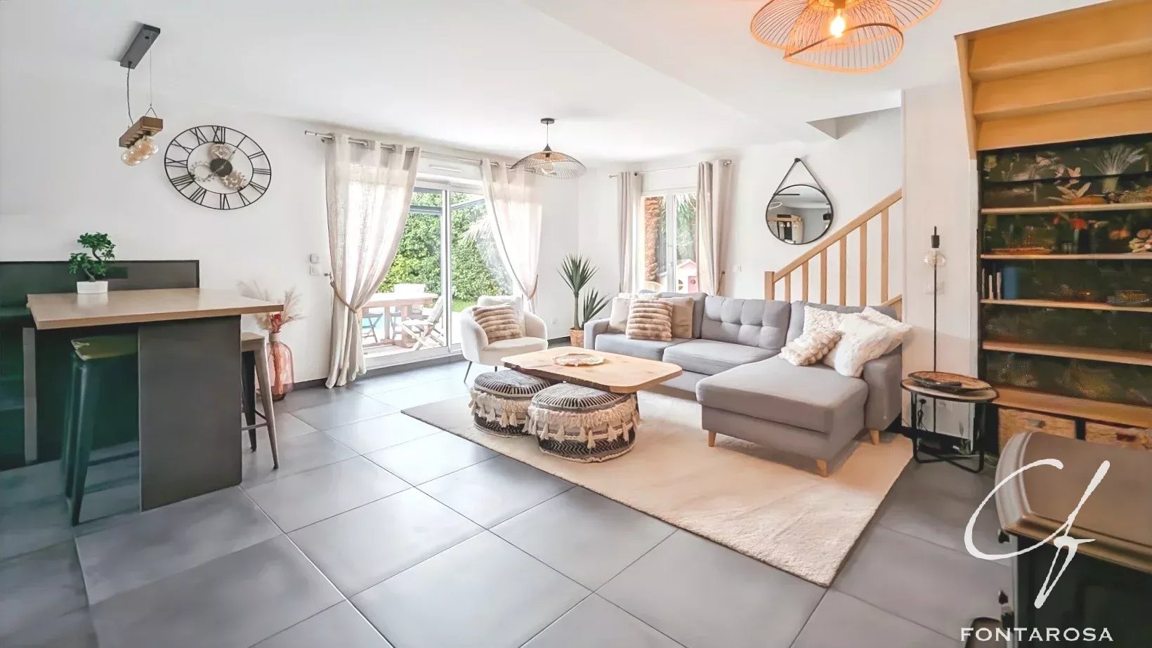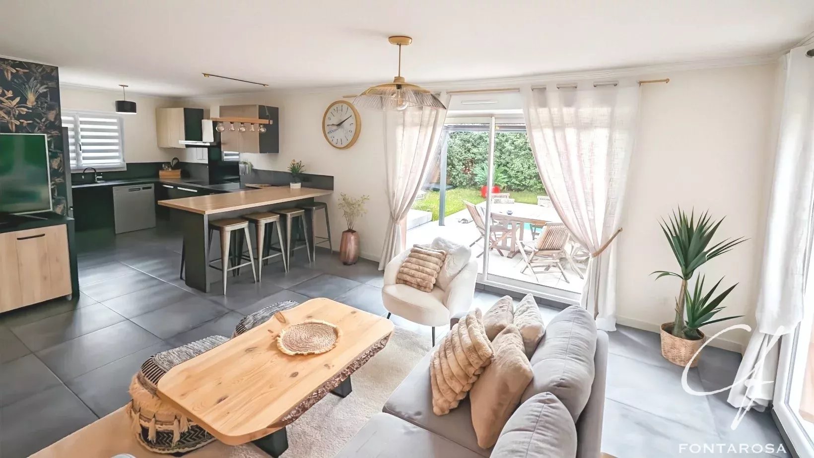 Maison moderne, fonctionnelle et bien située, avec des commerces accessibles à pied, à environ cinq minutes du village et à dix minutes de l’autoroute.