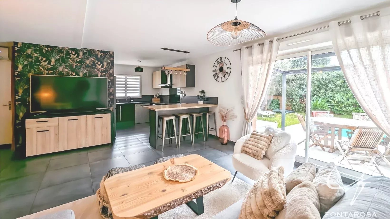 Au rez-de-chaussée, vous serez séduit par un séjour lumineux avec cuisine ouverte, offrant un accès direct au jardin et à la piscine, parfait pour profiter des beaux jours. Ce niveau propose également deux chambres de plain-pied, dont une avec sa salle d’eau privative.