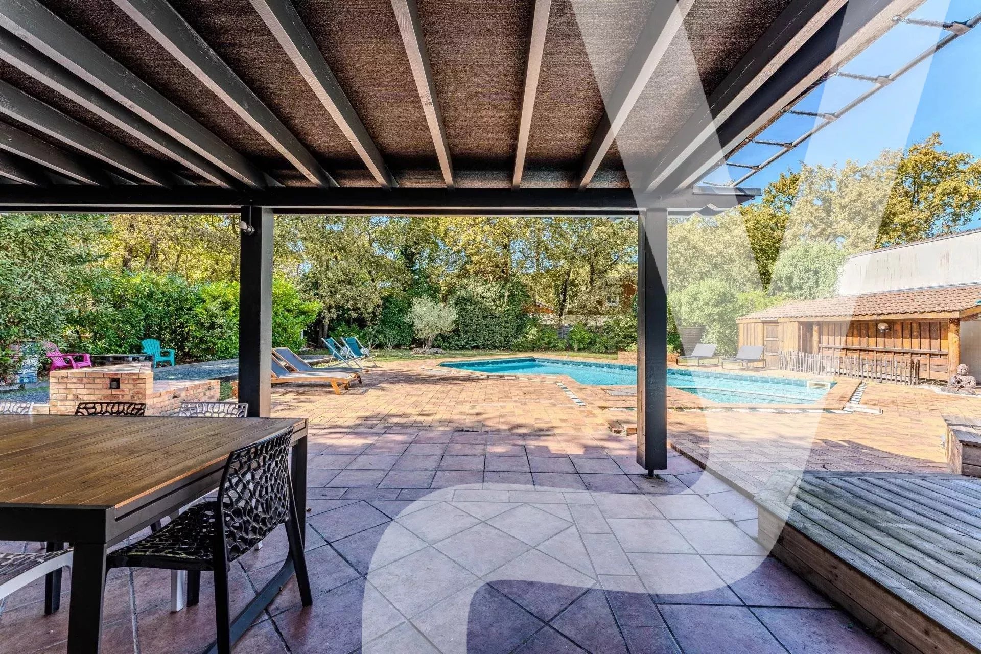 Maison familiale d'exception – Cestas (33) Nichée dans un écrin de chênes, cette majestueuse demeure familiale vous offre calme absolu et intimité totale sur un terrain arboré de plus de 1 800 m² sans vis-à-vis. Intérieur Vaste séjour/salle à manger de + de 60 m² avec cheminée et poêle à bois double combustion Cuisine familiale 5 chambres Salle de jeux, bureau et salon à l'étage Cave avec régulation hygrométrique (idéale pour les amateurs de vin) Extérieur: Piscine 6 X 12 Pergola et cuisine d'été Boulodrome Garage de 46 m² + appentis Terrain de 1832m2 Taxe foncière: 2310€ Confort: Climatisation dans tout le bien Parfaitement entretenue, prête à habiter Situation: Transports scolaires disponibles Accès rapide à Bordeaux et ses environs Montant estimé des dépenses annuelles d'énergie pour un usage standard : entre 2 540 Euros et 3 520 Euros par an. Prix moyens des énergies indexés sur les années 2021/2022/2023 (abonnements compris). Honoraires charge vendeur Les informations sur les risques auxquels ce bien est exposé sont disponibles sur le site Géorisques : www.georisques.gouv.fr Citylife Arcachon - Caisse de garantie Galian 120000 EUR - RCS 941806796 - CPI 33012025000000043 - RCP Galian