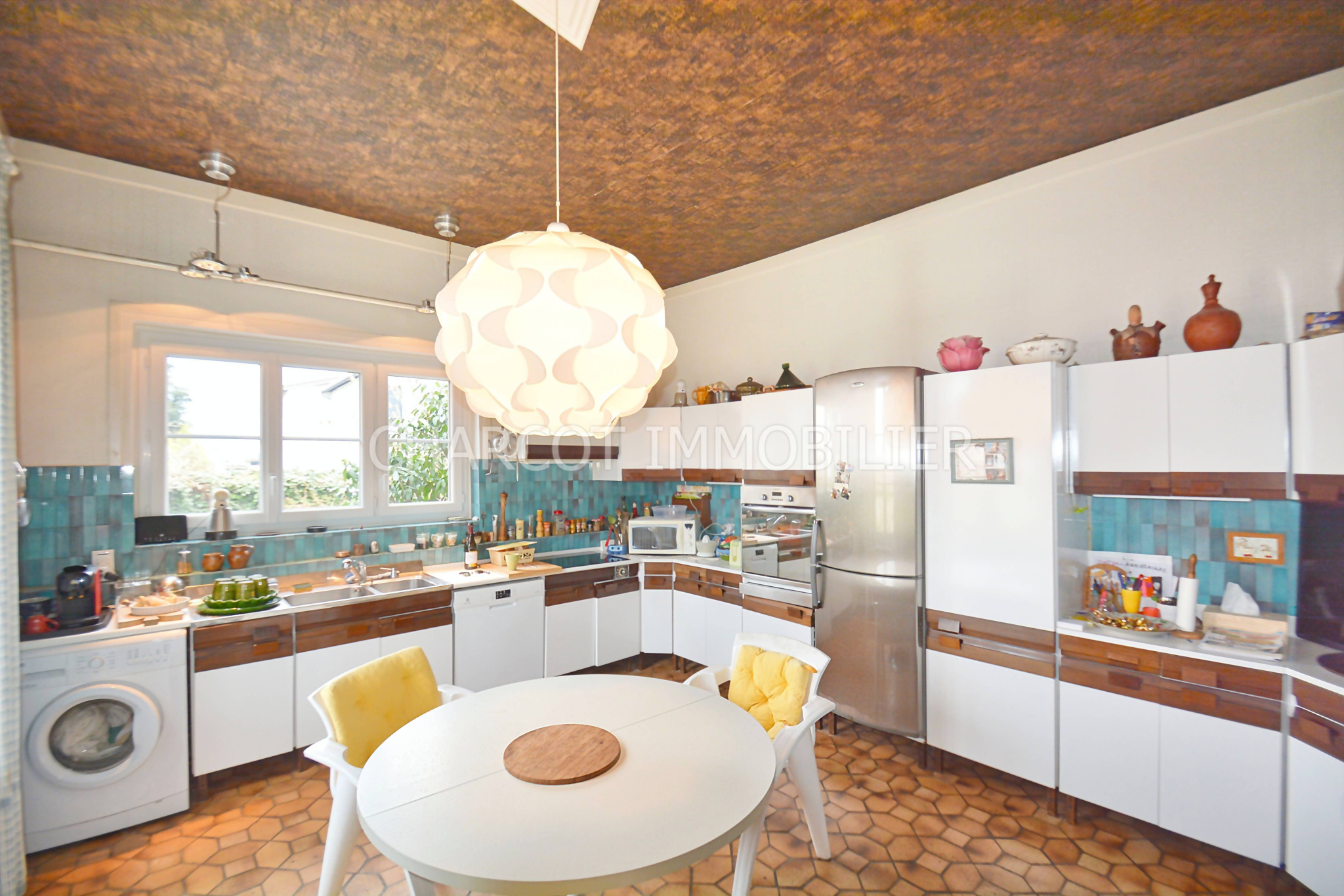 Implantée sur un superbe terrain paysagé de 1 072 m2 exposé plein Ouest, elle offre des volumes généreux baignés de lumière, avec une pièce de réception traversante et une cuisine élégante.