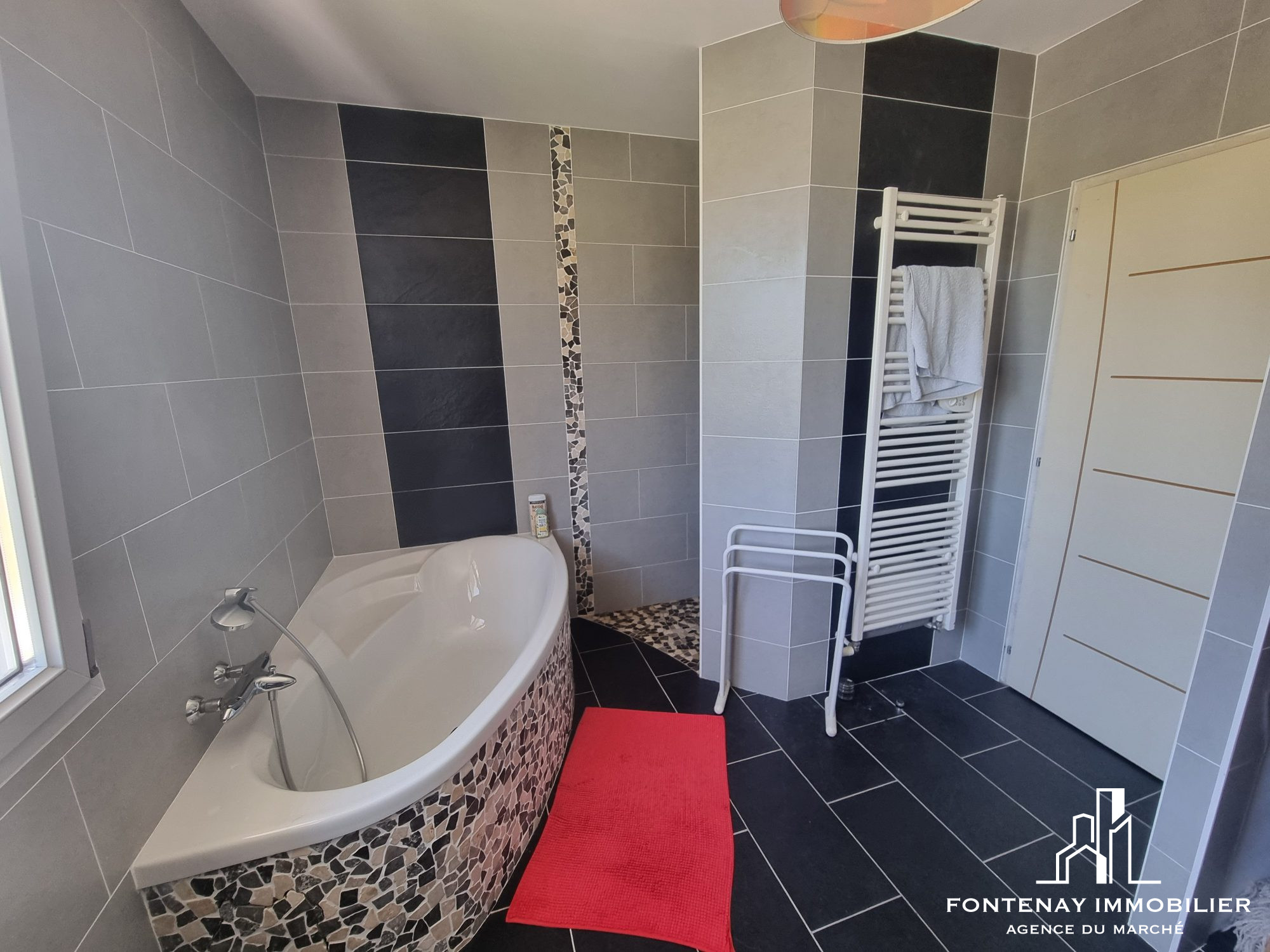 FONTENAY IMMOBILIER. Votre conseiller Benoit MONNEREAU joignable au O6.O2.O8.98.85 vous propose : A DEUX PAS DU CENTRE, très beaux volumes pour cette maison contemporaine entièrement rénovée. Elle vous offrira une pièce de vie de plus de 60 m² avec sa cuisine ouverte A/E, son poêle à bois et ses accès de plain-pied sur le terrain, une chaufferie, quatre chambres, un bureau, deux w-c, une salle de bains avec une douche.