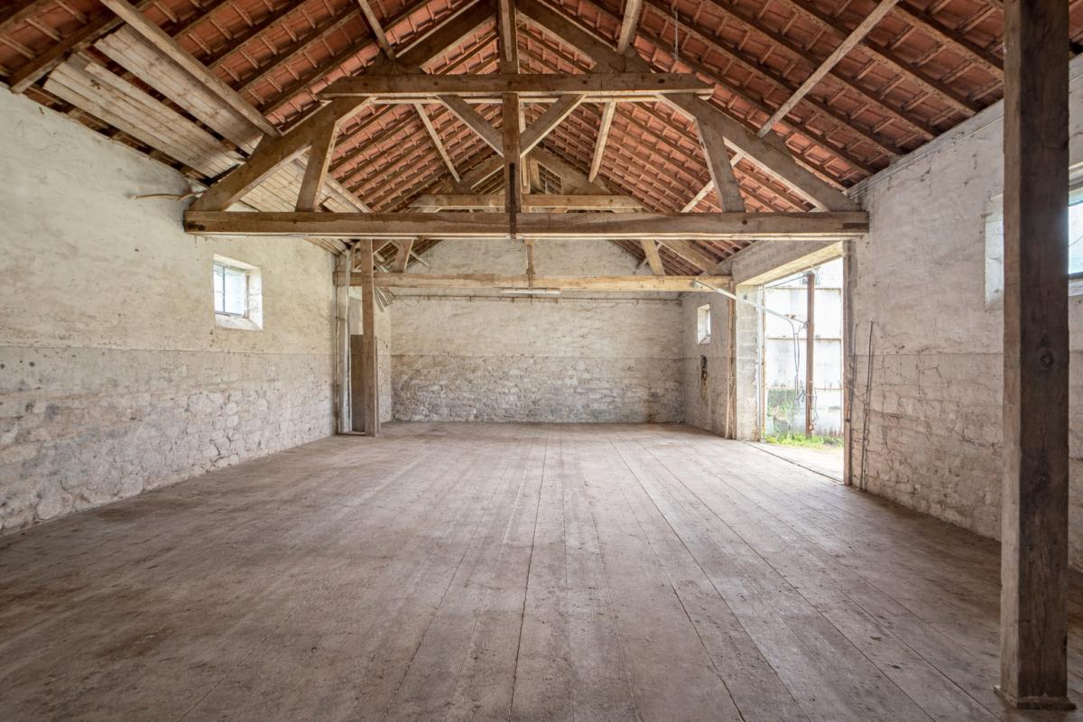 Lot d'une surface foncière de 786m², avec ensemble bâti de 121m² au sol et une belle hauteur sous plafond avec charpente apparente.