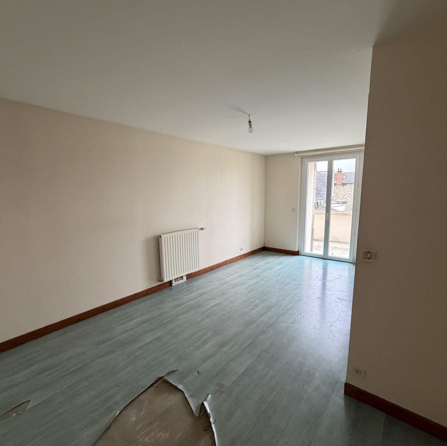 Double séjour lumineux de 44 m² avec poêle à bois.