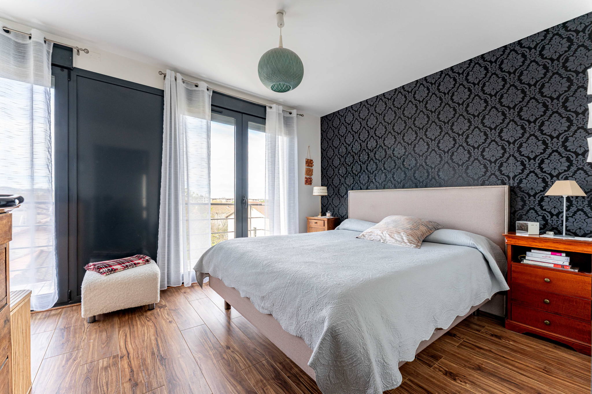 En poussant la porte d'entrée, le vaste hall d'entrée avec son placard vous ouvrira l'accès de la suite parentale avec sa salle d'eau ouverte et son dressing tout équipé ouvrant sur son balcon exposé Ouest, avec sa vue dégagée. Cet espace dispose également d'un WC indépendant et l'accès au garage.