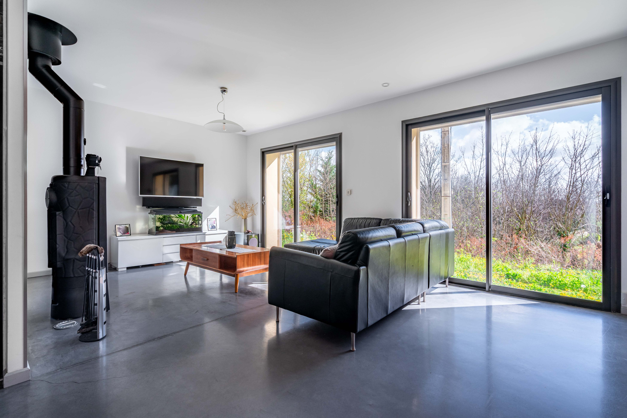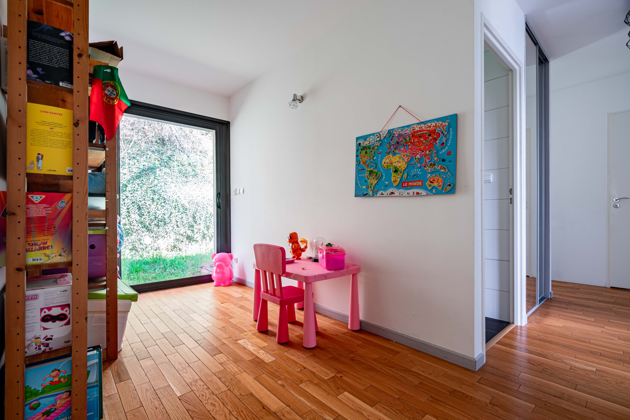 Une grande terrasse à l'abri des regards, un garage et deux places de stationnement situées devant la maison complètent le bien.