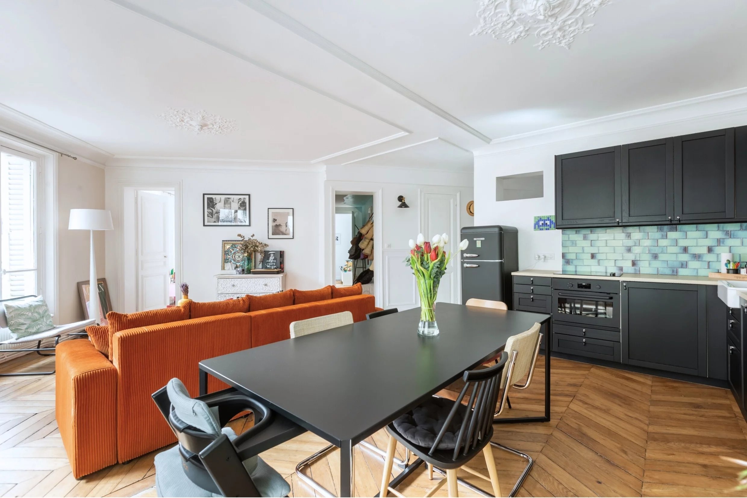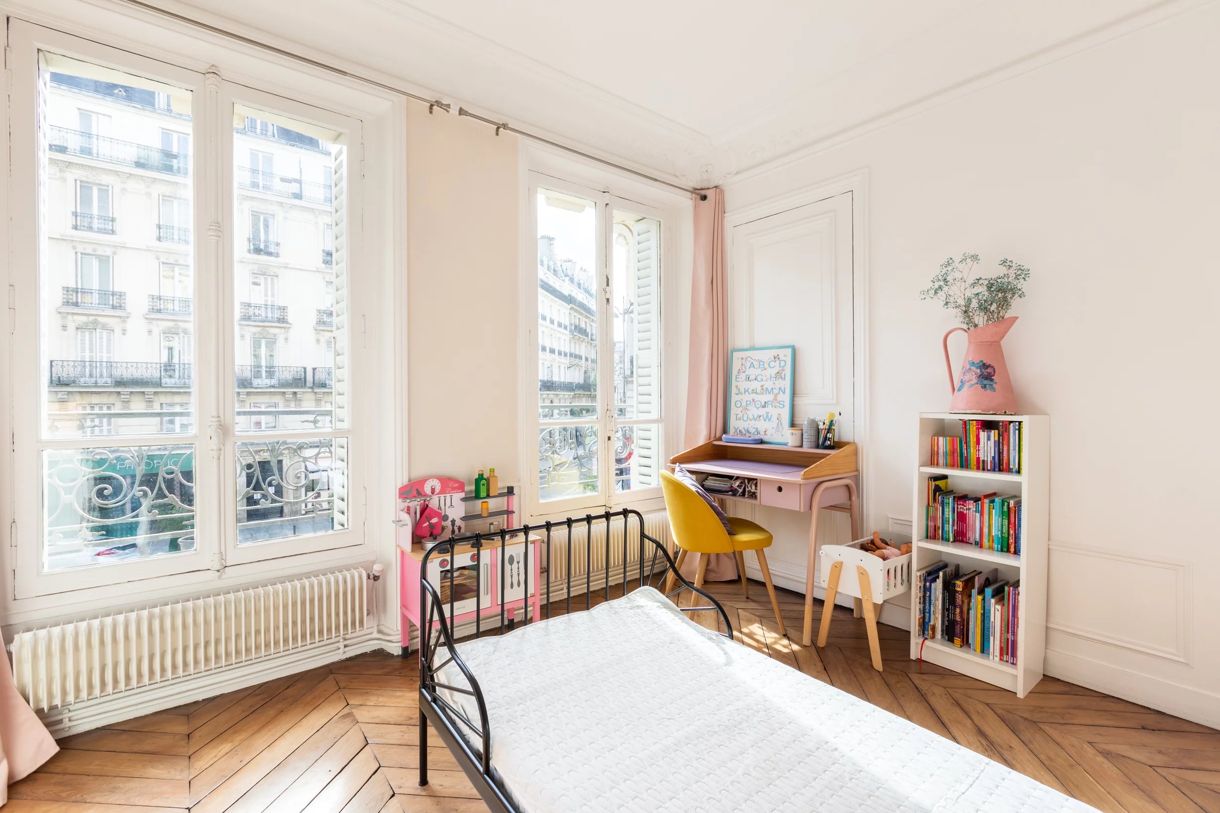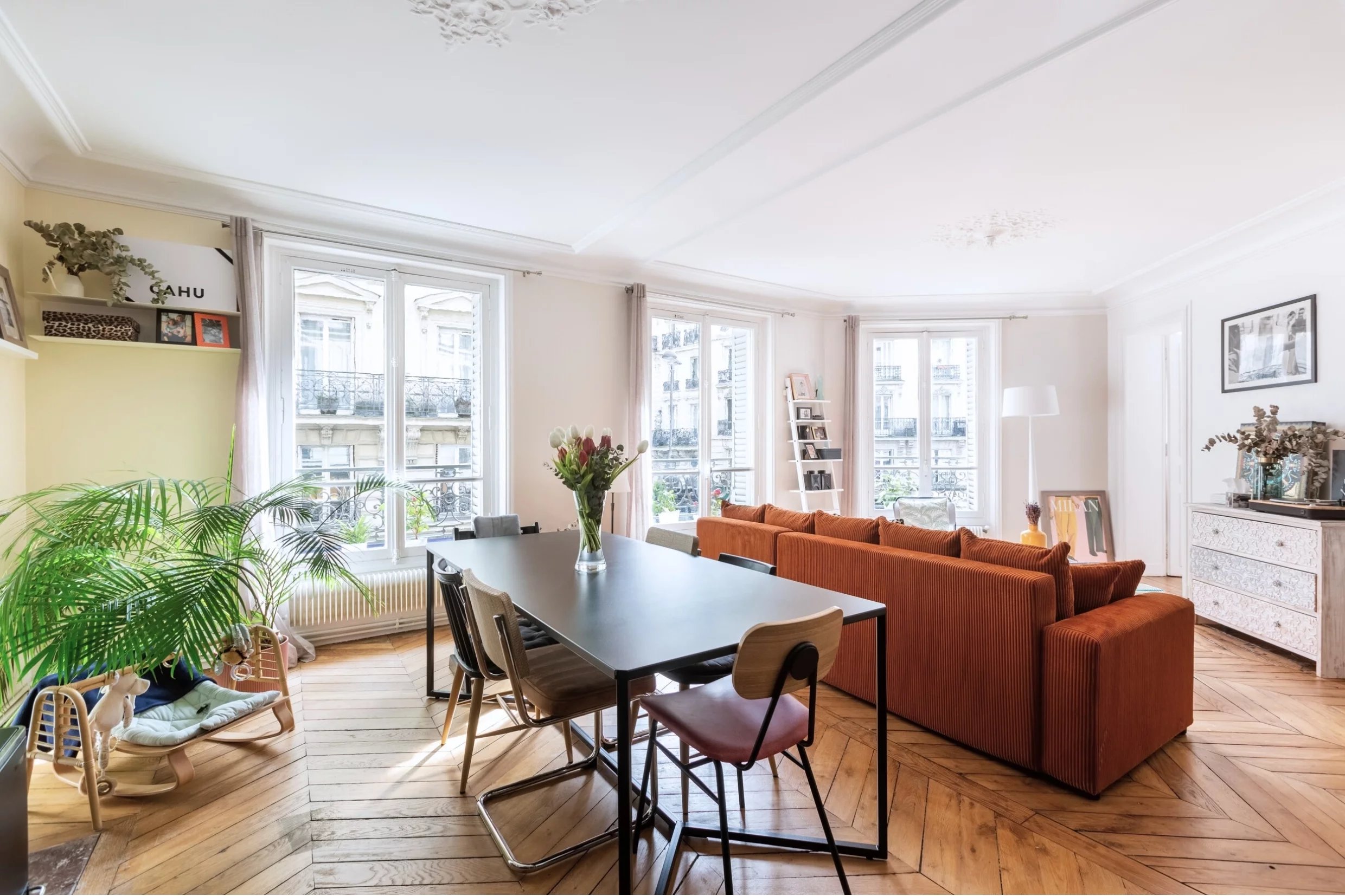 Rue Gérando, dans un des quartiers les plus prisés du 9e arrondissement, l'agence des Enfants Rouges vous propose ce magnifique appartement de caractère de 106,78m2, au 1er étage avec ascenseur, comprenant trois vraies chambres et un vaste séjour d'angle exposé plein sud et baigné de soleil. L'appartement, en parfait état, vous séduira par son style classique haussmannien, ses parquets chevrons, ses moulures et ses cheminées. Très bien rénové et optimisé il dispose d'une salle de bains ainsi qu'une salle de douche attenante à la chambre parentale. Il dispose également de nombreux rangements et d'un dressing intégrés. Sa situation en angle vous permettra de profiter de vues dégagées et d'une belle sensation d'ouverture sur l'extérieur. L'immeuble de 1900 présente une très belle façade en pierres de taille ravalée et de parties communes de standing en parfait état. DPE D. Cave et abri à vélo dans la cour. Les informations sur les risques auxquels ce bien est exposé sont disponibles sur le site Géorisques : www.georisques.gouv.fr